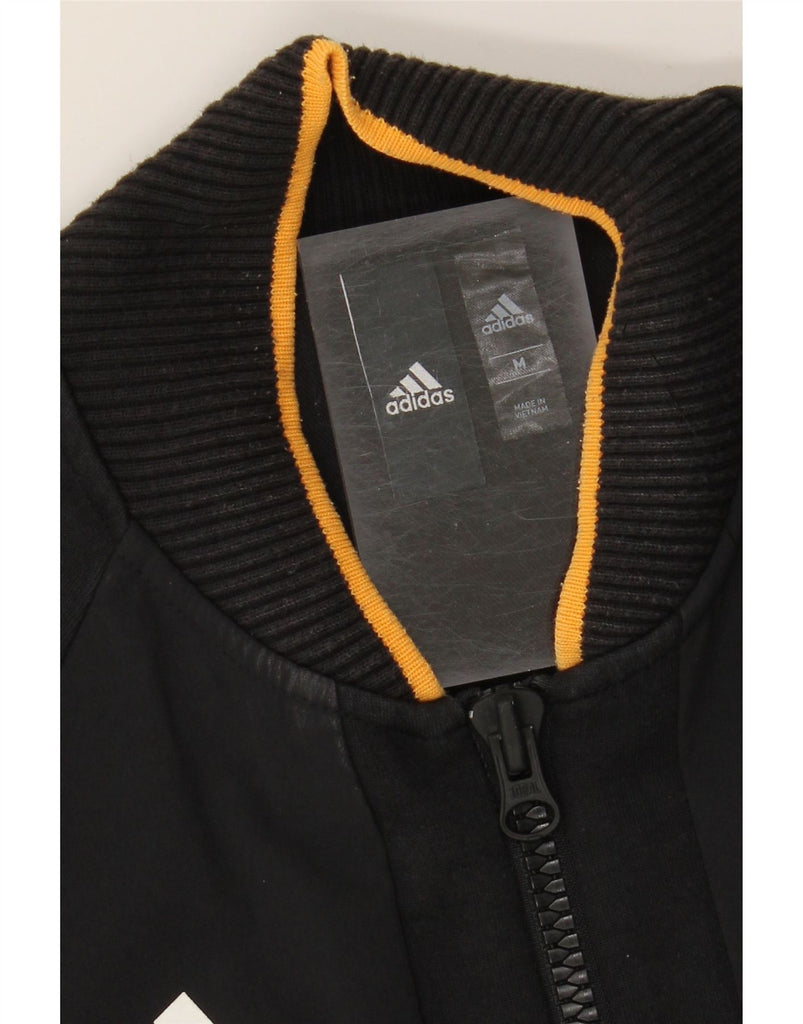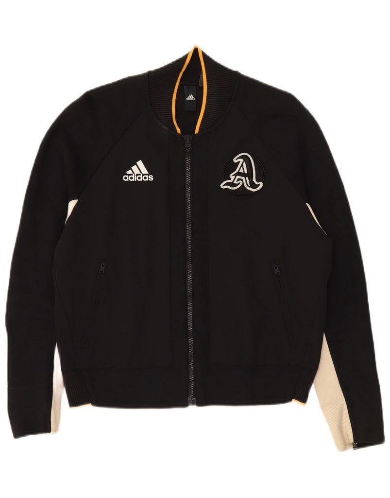 ADIDAS Womens Tracksuit Top Jacket UK 14 Medium Black Colourblock Nylon