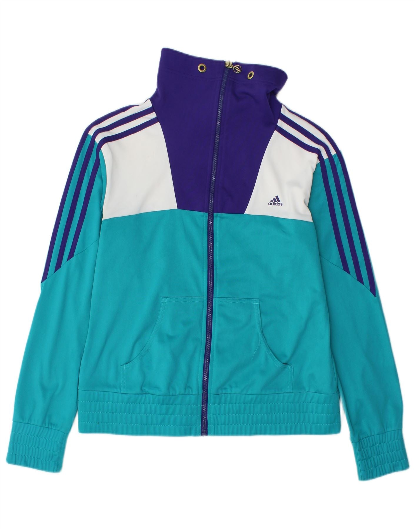ADIDAS Womens Tracksuit Top Jacket UK 14 Medium Turquoise Colourblock