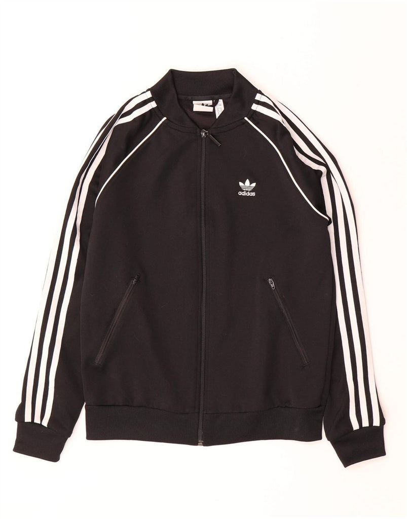 ADIDAS Womens Tracksuit Top Jacket UK 8 Small Black Polyester