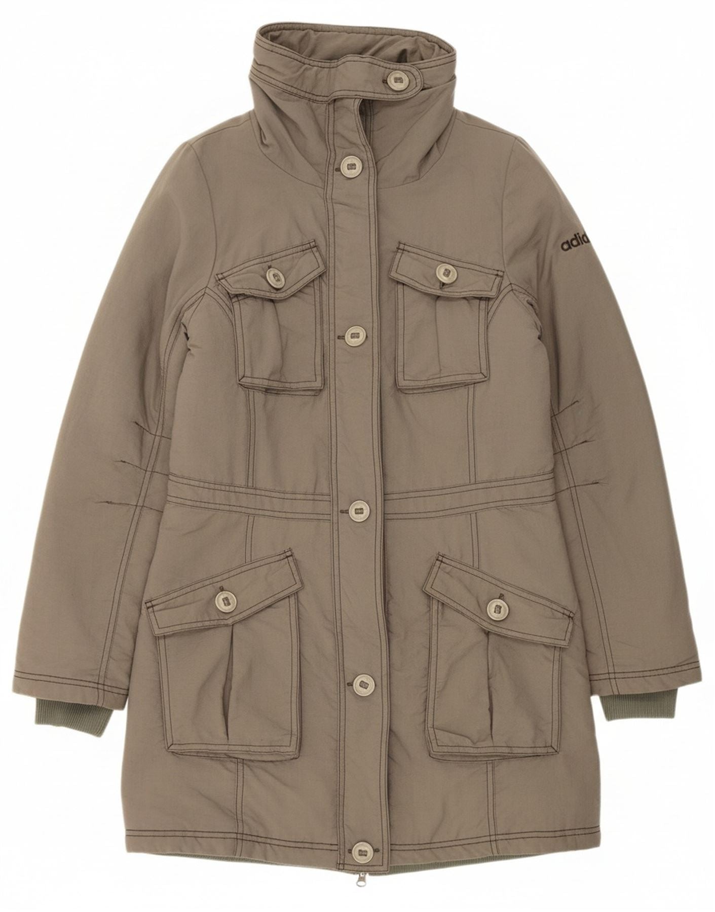ADIDAS Womens Utility Windbreaker Coat UK 12 Medium Grey Polyamide