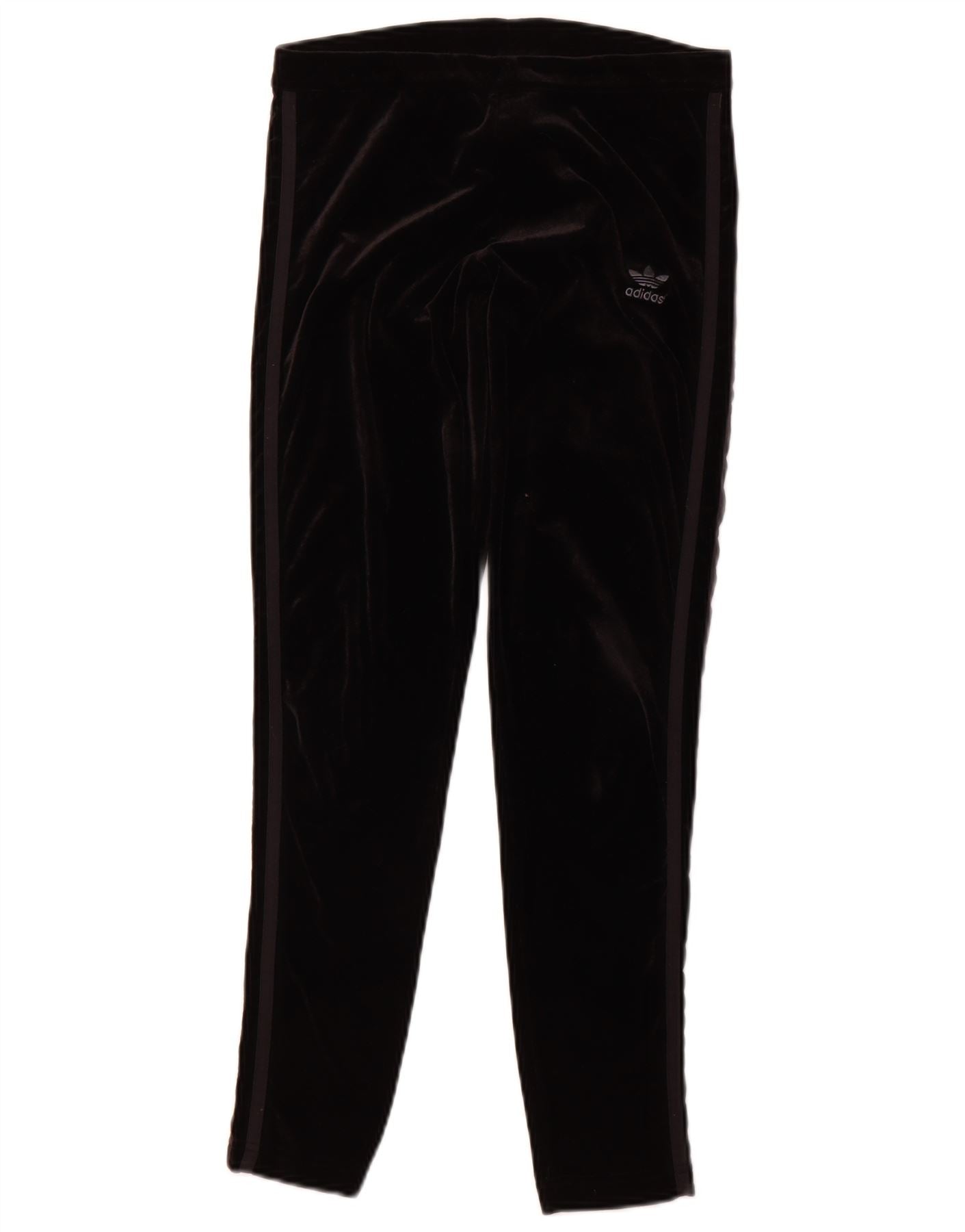 ADIDAS Womens Velour Leggings UK 12 Medium Black Polyester