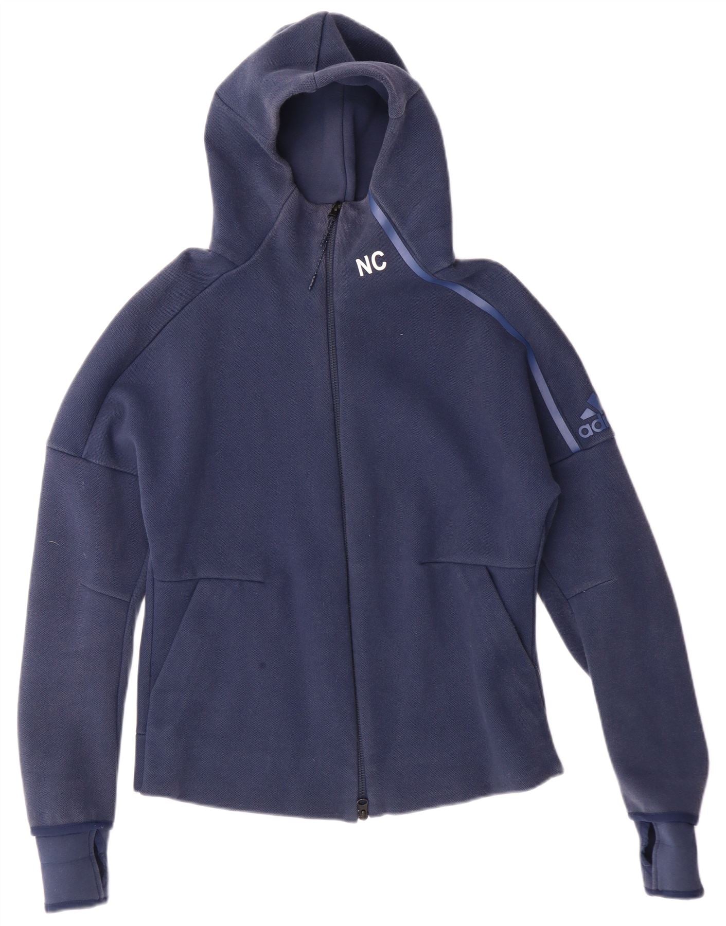 ADIDAS Womens Zip Hoodie Sweater UK 12/14 Medium Navy Blue Cotton