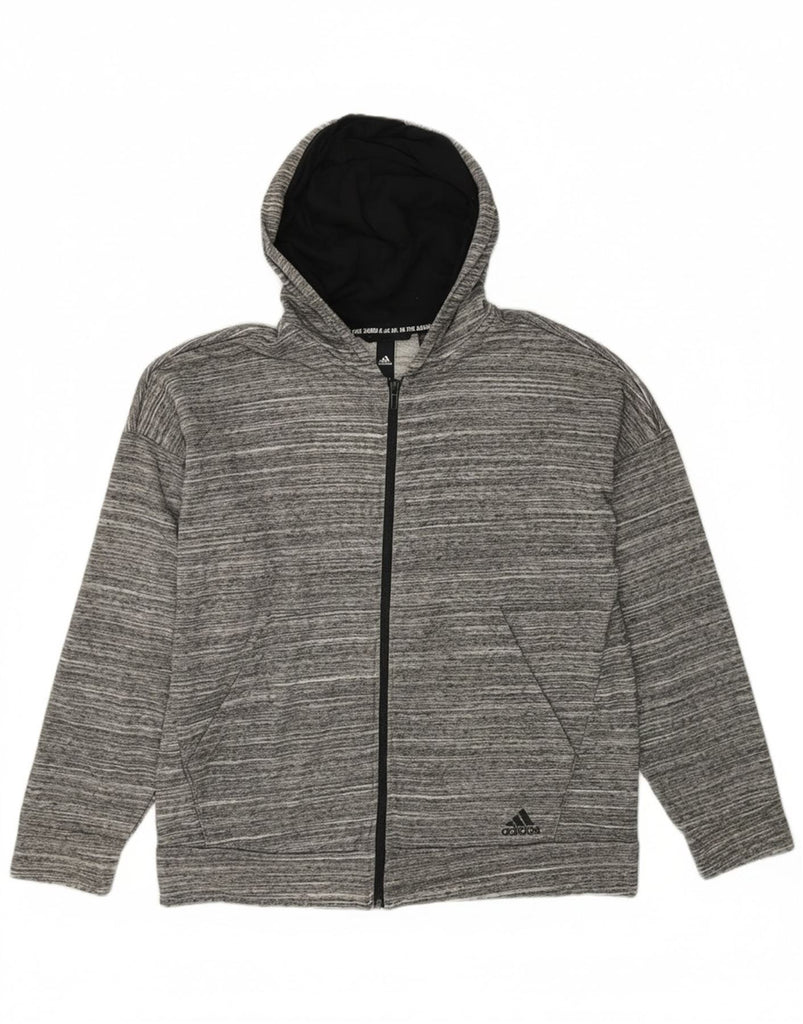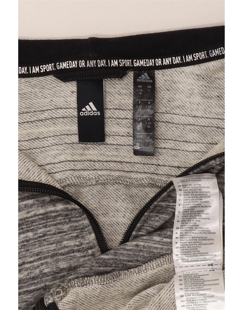 ADIDAS Womens Zip Hoodie Sweater UK 16/18 Large Grey Pinstripe Cotton