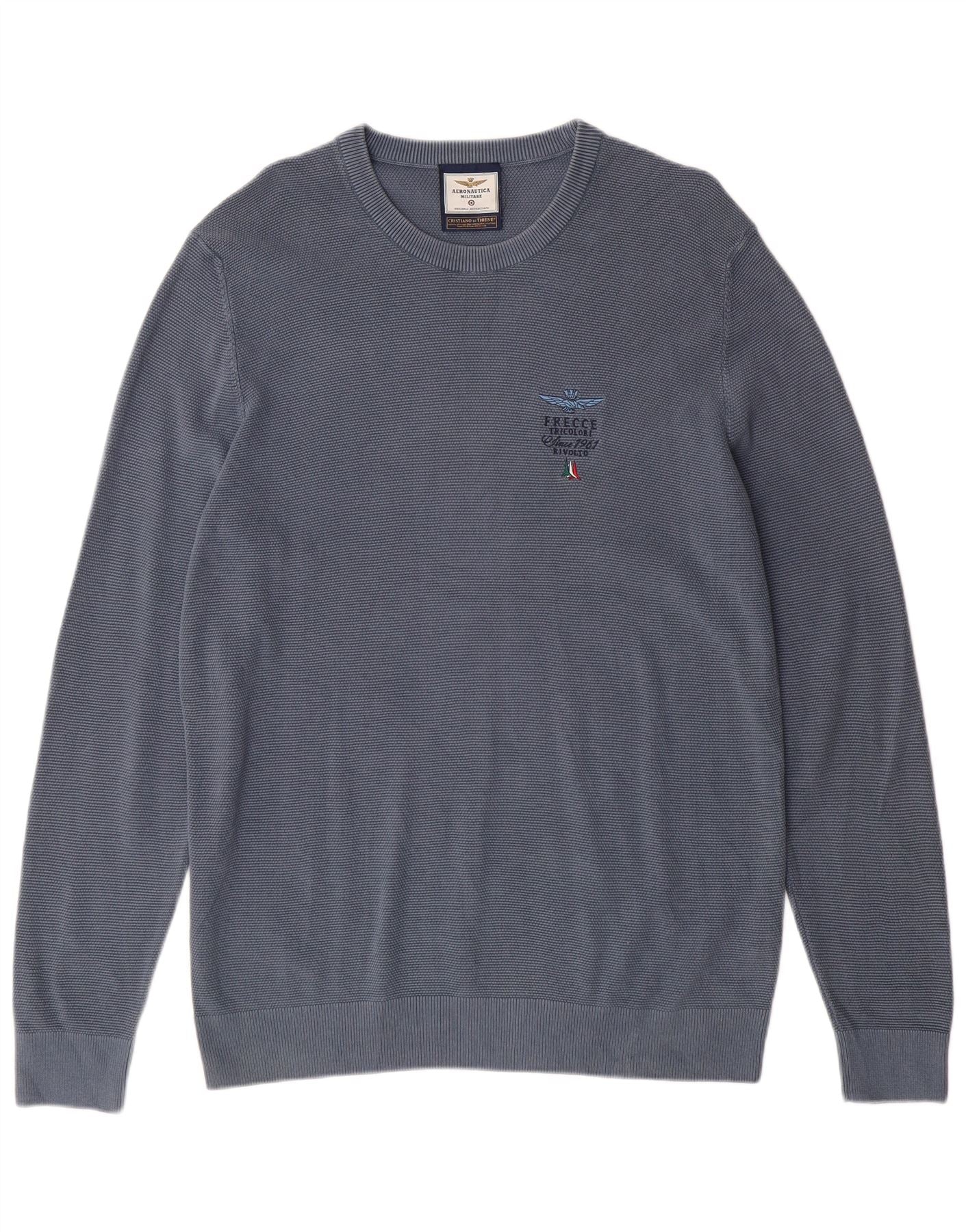 AERONAUTICA MILITARE Mens Crew Neck Jumper Sweater XL Blue Cotton