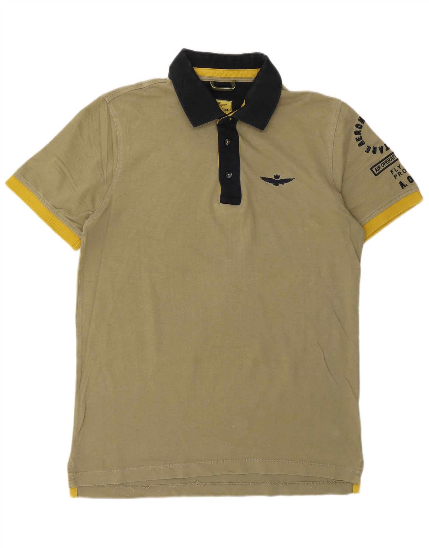 AERONAUTICA MILITARE Mens Graphic Slim Fit Polo Shirt Medium Khaki Cotton