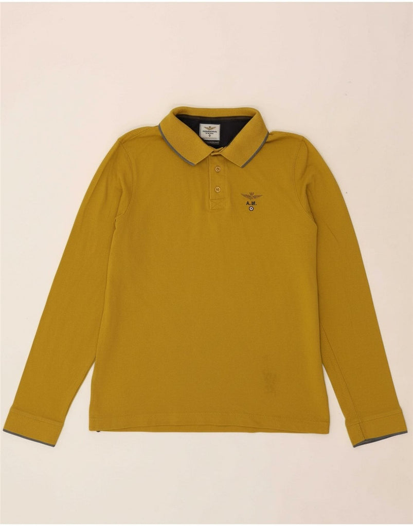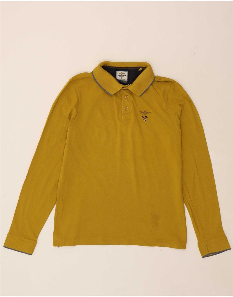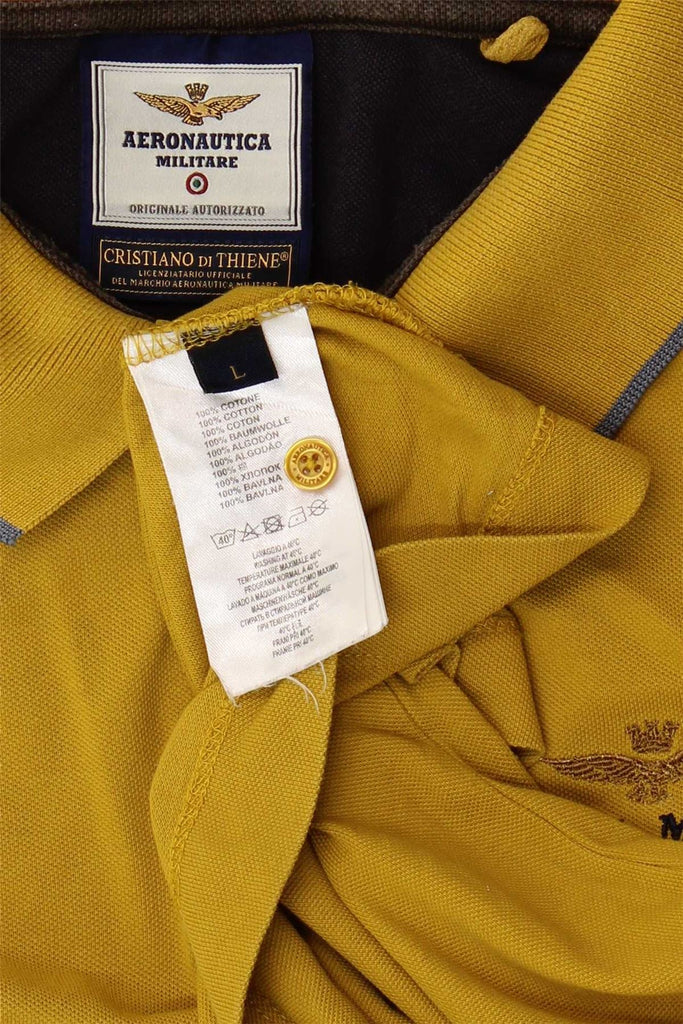 AERONAUTICA MILITARE Mens Long Sleeve Polo Shirt Large Yellow Cotton