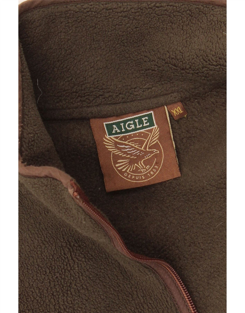 - AI Description: This Aigle men's Fleece Jacket is crafted from soft khaki microfleece, offering warmth and comfort. It features a classic collared neckline and a full zip closure for versatile wear. Long sleeves provide ample coverage. Zipped pockets offer practical storage. The regular fit ensures comfortable layering. This padded style combines warmth with a timeless design.