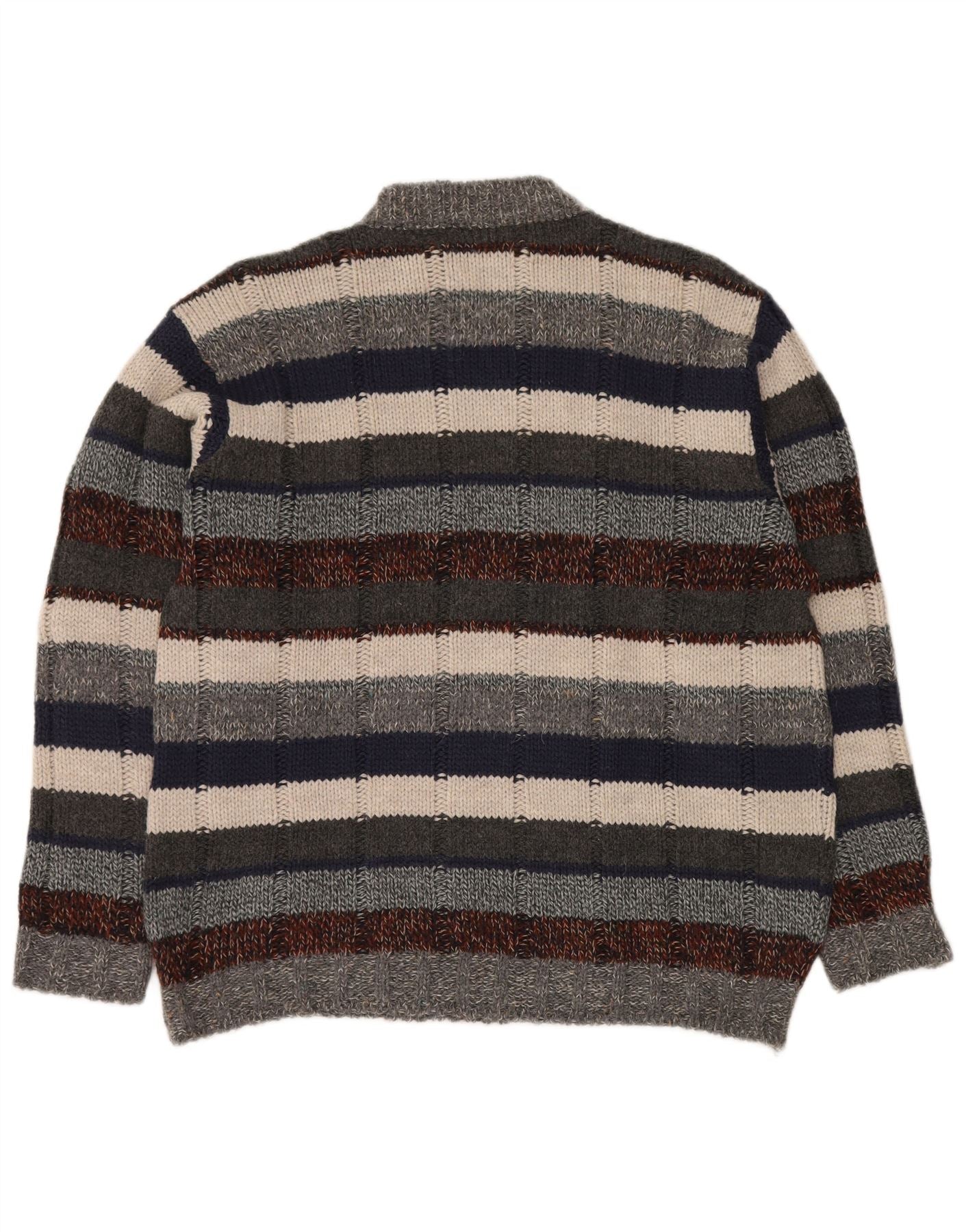 ALCATRAZ Mens Crew Neck Jumper Sweater Large Multicoloured Striped Wool