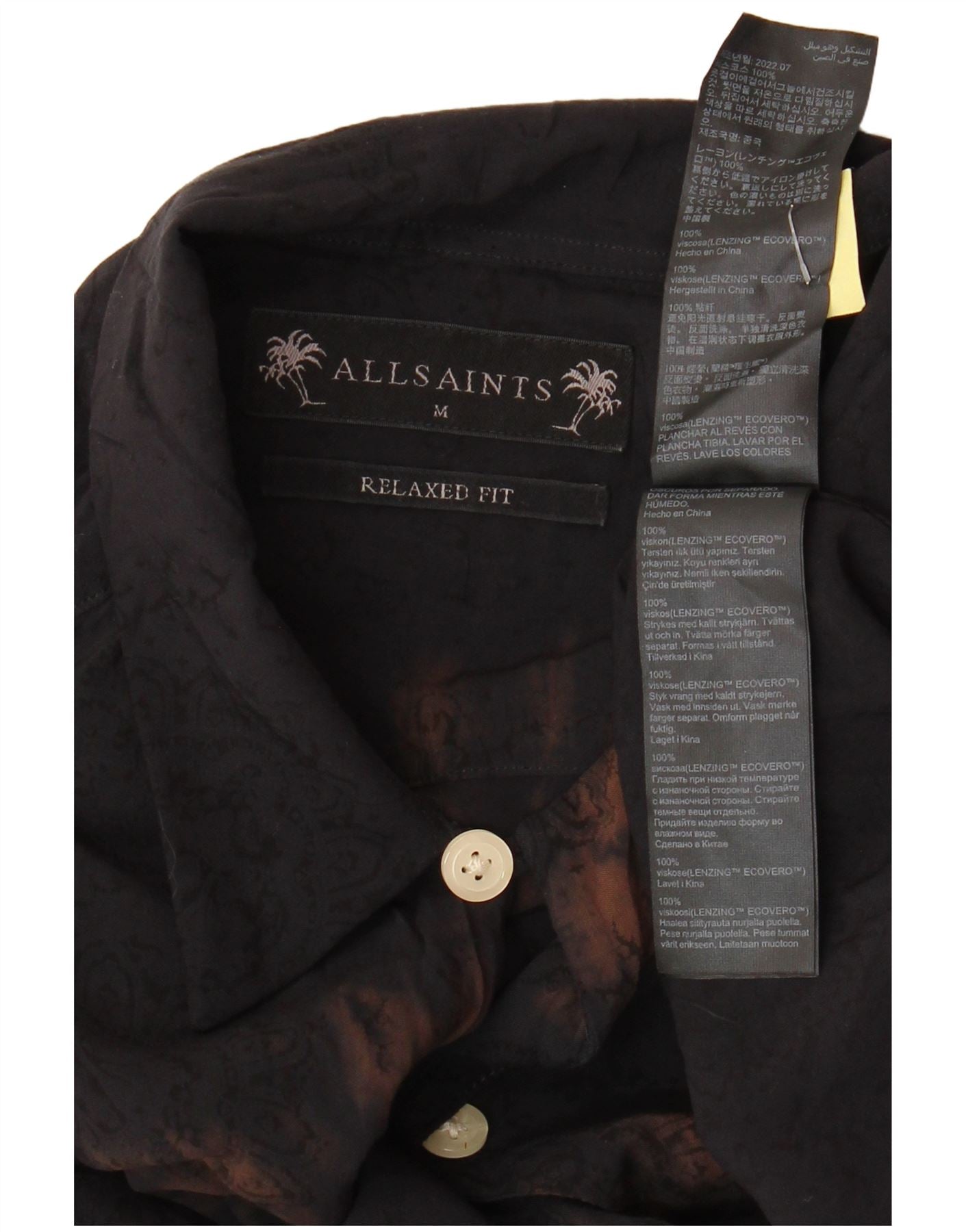 ALL SAINTS Mens Relaxed Fit Short Sleeve Shirt Medium Black Tie Dye