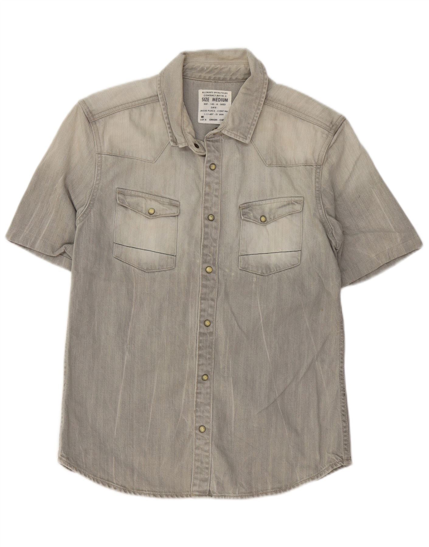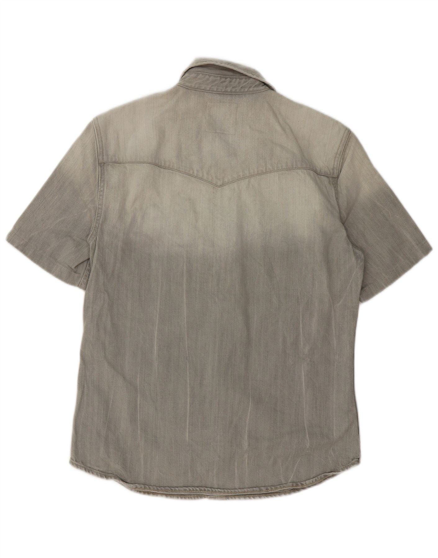 ALL SAINTS Mens Short Sleeve Denim Shirt Medium Grey Cotton