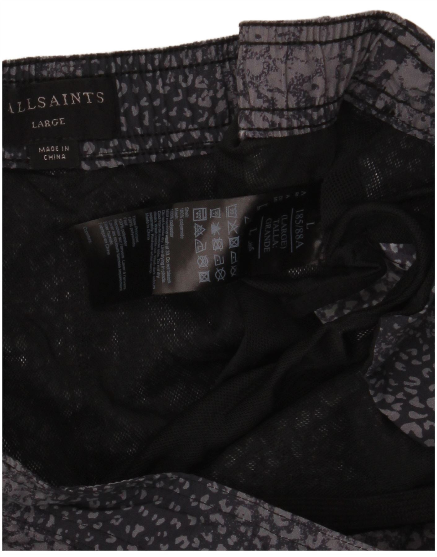 All Saints Mens Swimming Shorts Large Black Animal Print Polyamide