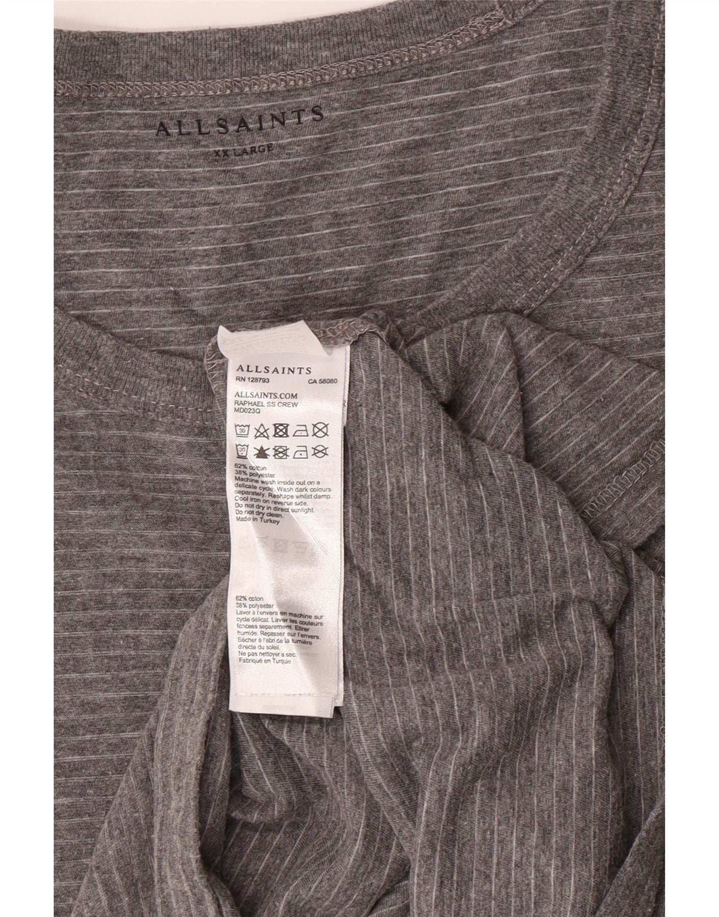 ALL SAINTS Mens T-Shirt 2XL Grey Striped Cotton