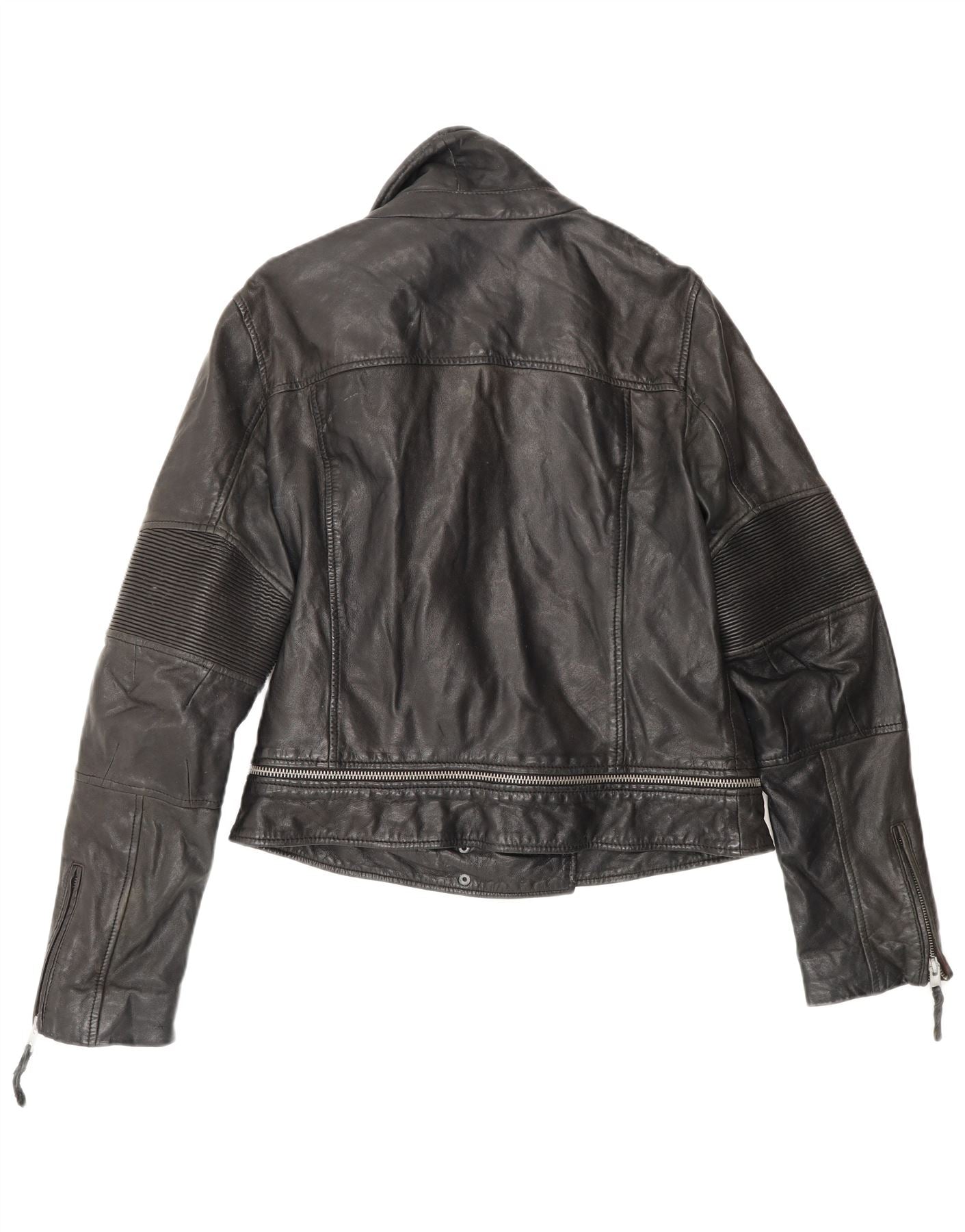 All Saints Womens Leather Biker Jacket UK 14 Large Black Leather