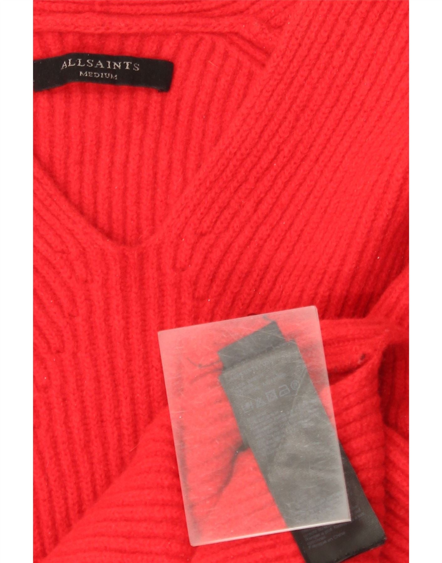 All Saints Womens Oversized V-Neck Jumper Sweater UK 14 Medium Red Wool