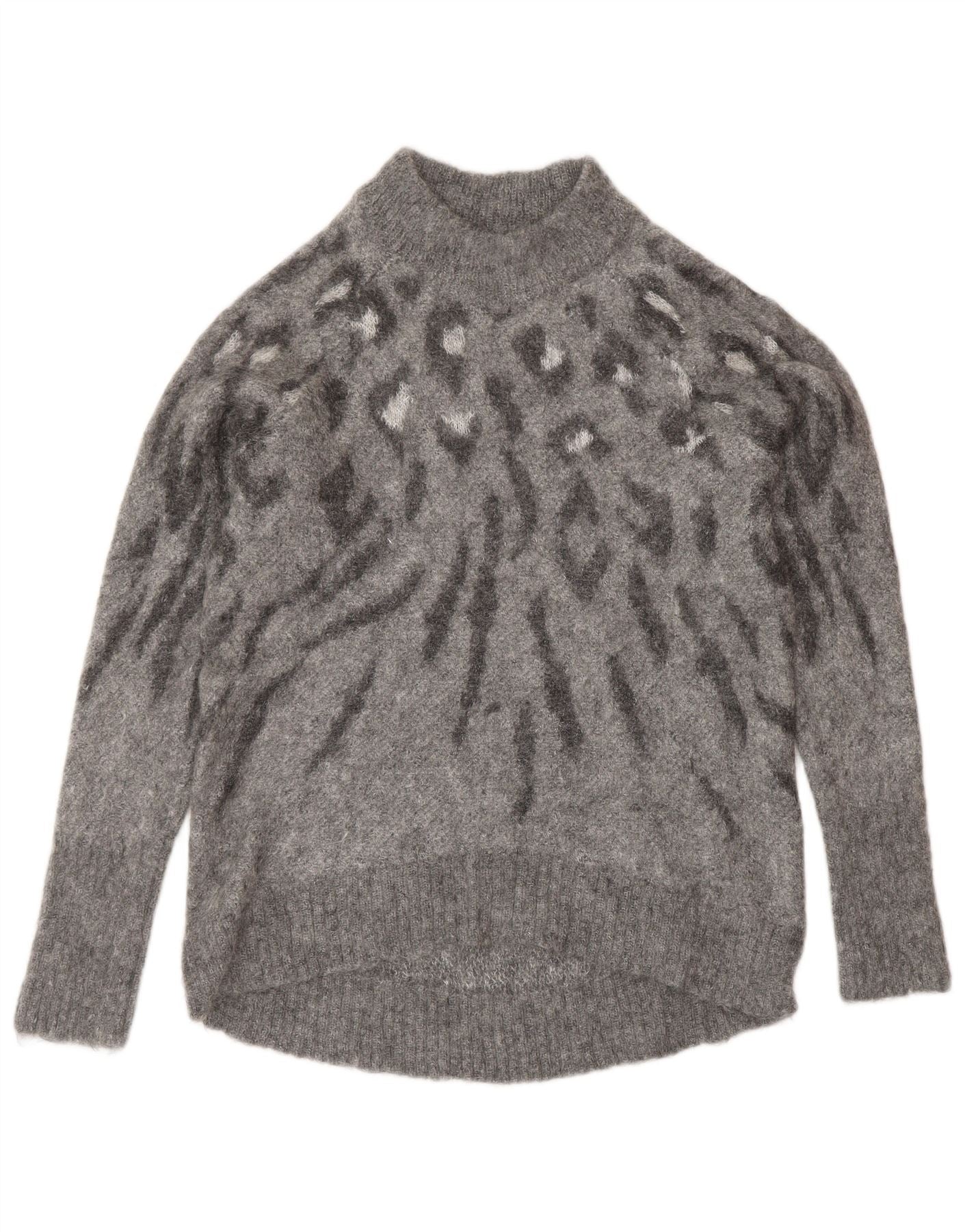 ALL SAINTS Womens Turtle Neck Jumper Sweater UK 10 Small Grey Animal Print