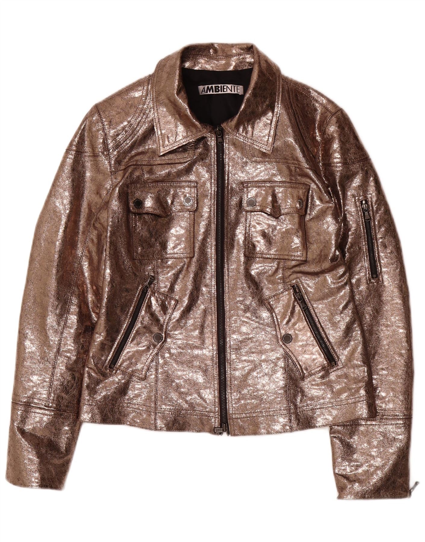 AMBIENTE Womens Faux Leather Utility Jacket UK 14 Large Brown Polyester