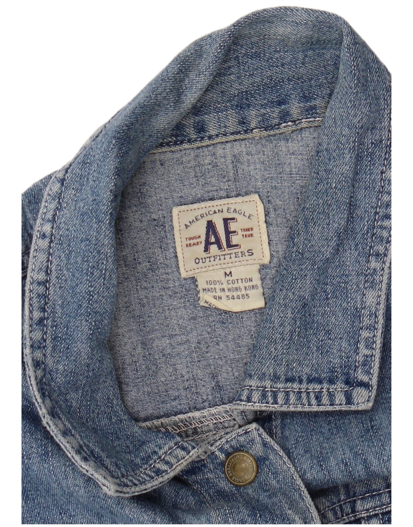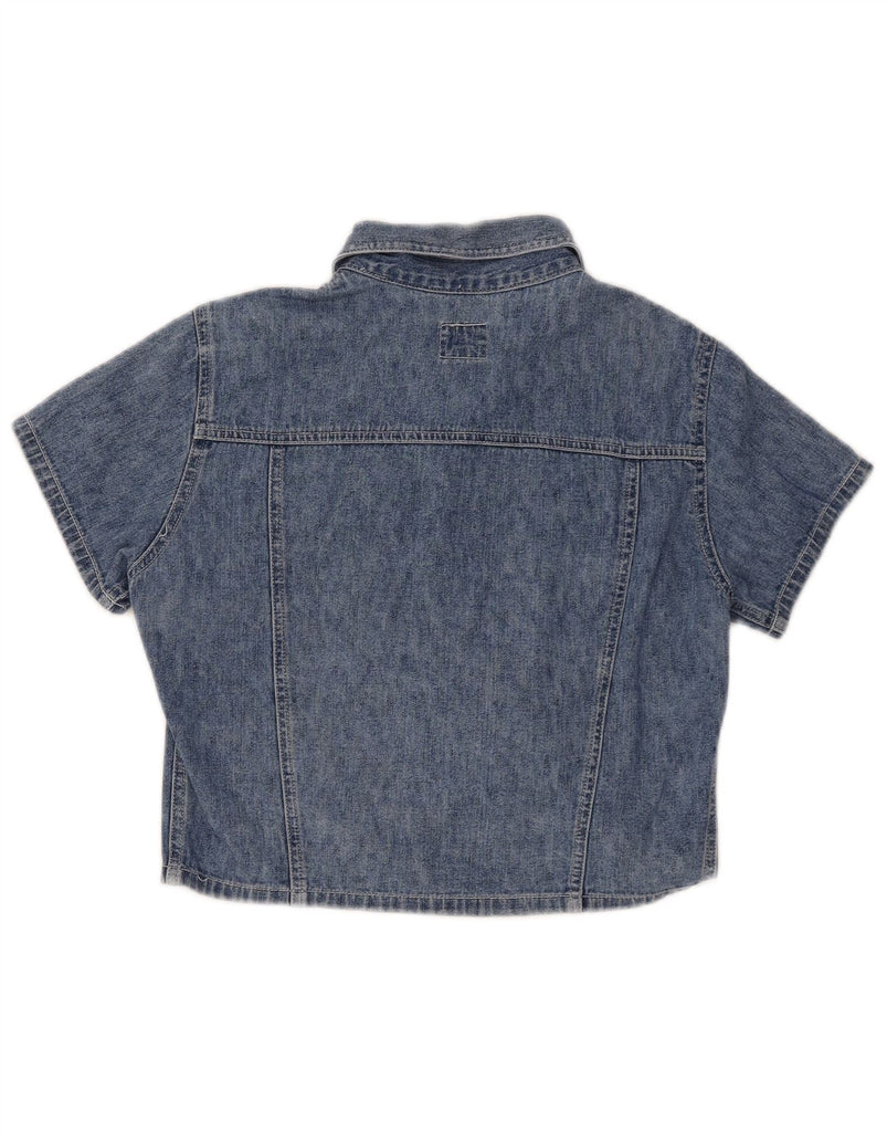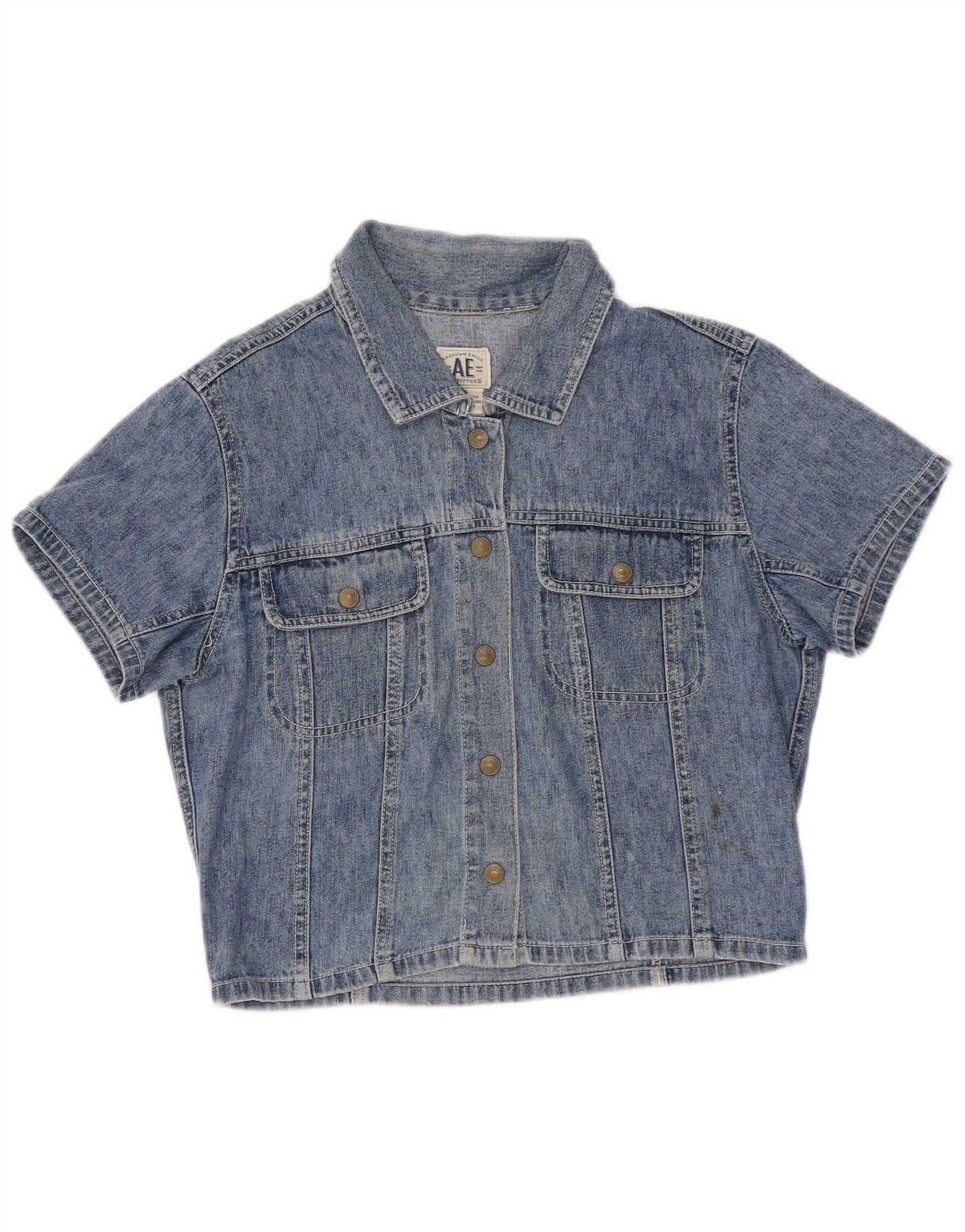 AMERICAN EAGLE Womens Crop Short Sleeve Denim Shirt UK 12 Medium Blue