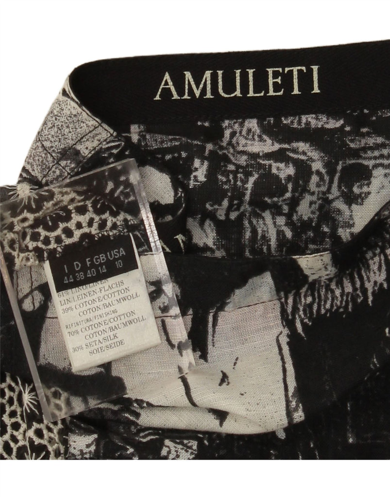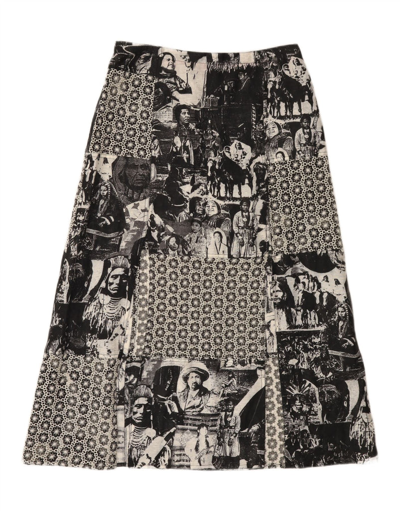 AMULETI Womens Graphic A-Line Skirt UK 14 Large W30 Black Patchwork Linen