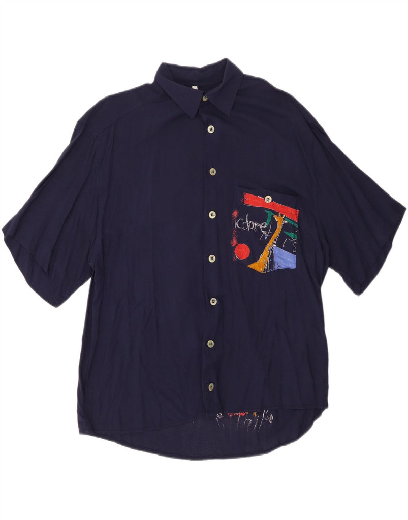 ANGELO LITRICO Mens Abstract Pattern Shirt UK 39/40 Medium Navy Blue