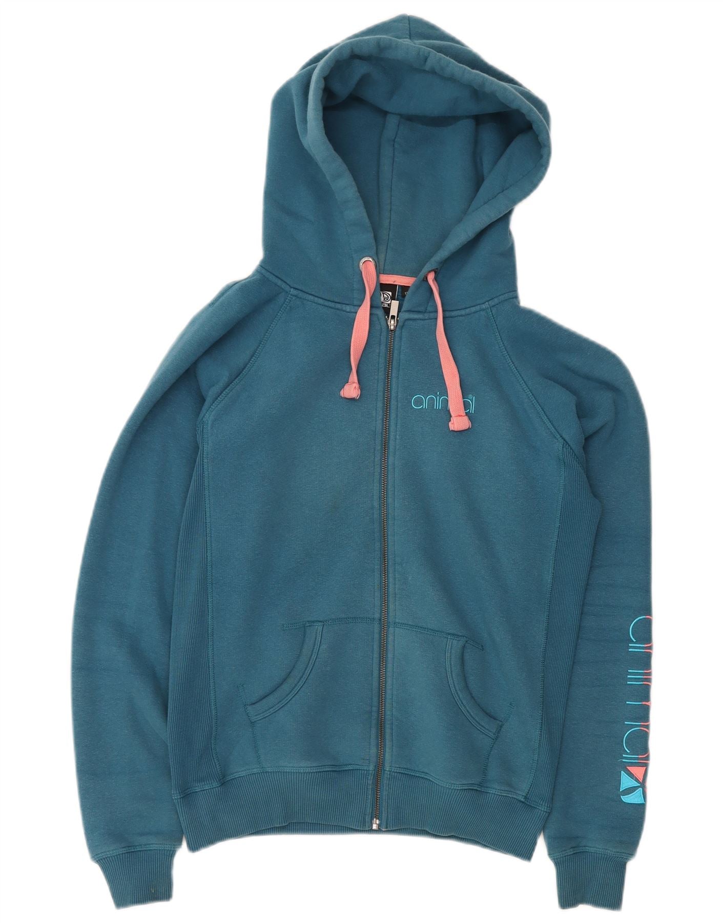 ANIMAL Womens Graphic Zip Hoodie Sweater UK 12 Medium Blue Cotton