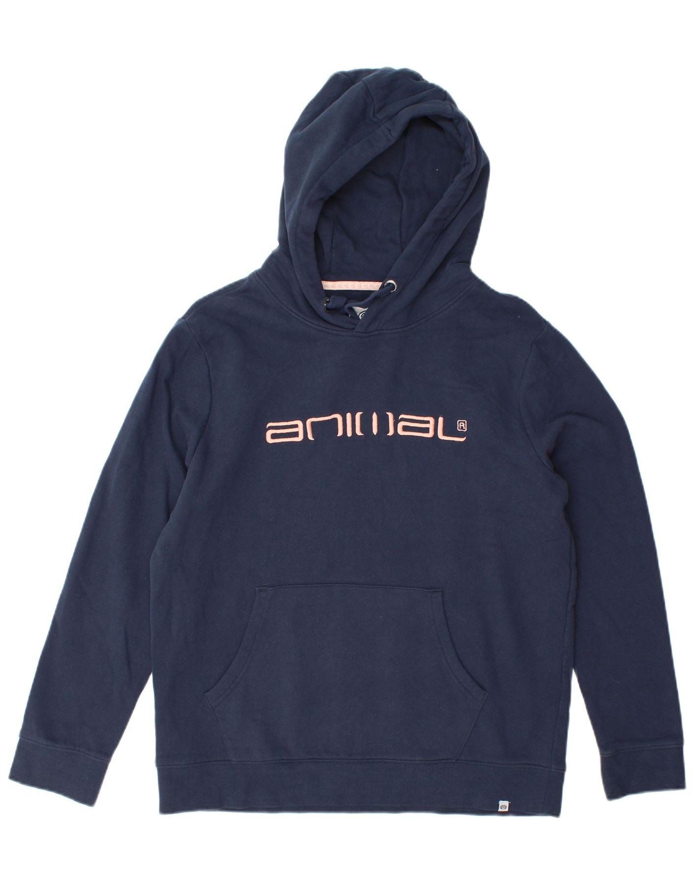 ANIMAL Womens Oversized Graphic Hoodie Jumper UK 10 Small Navy Blue Cotton