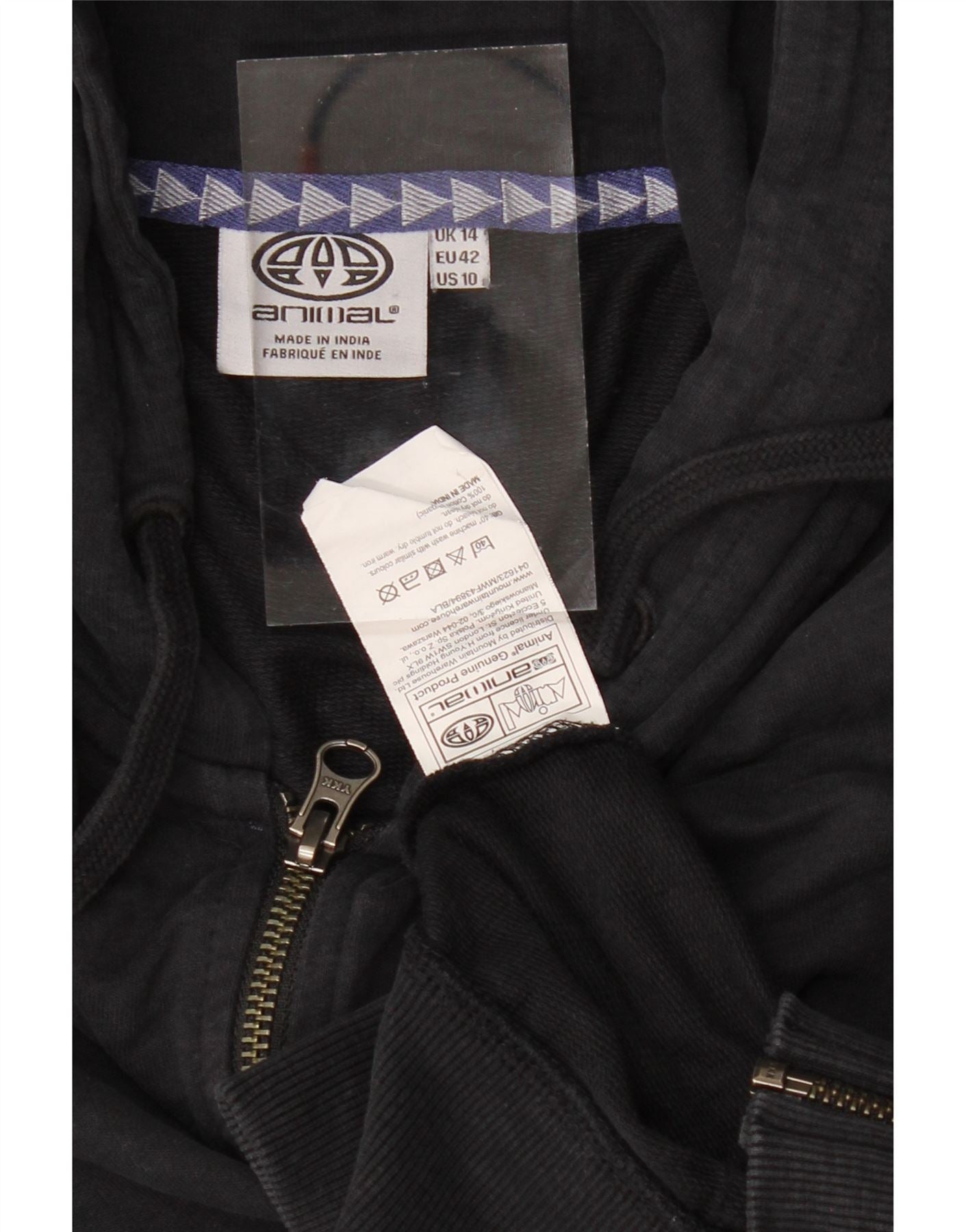 ANIMAL Womens Zip Hoodie Sweater UK 14 Large Black Cotton