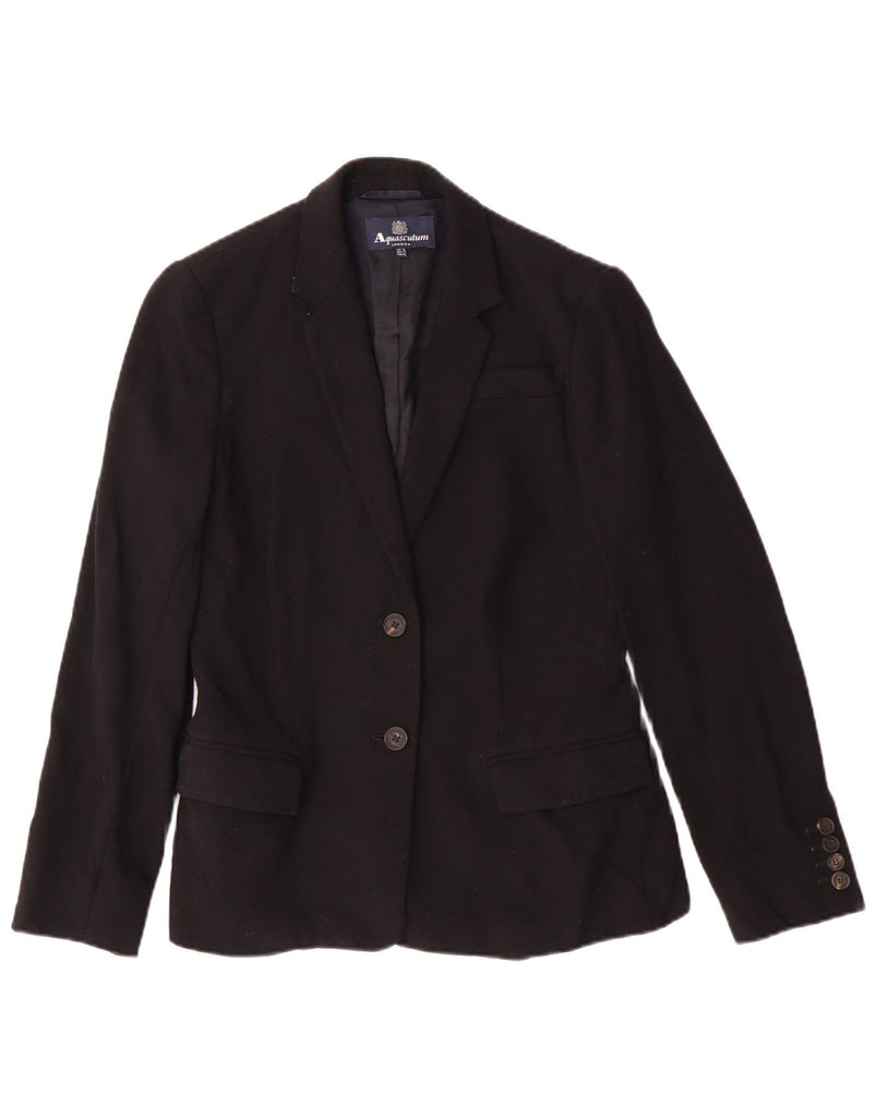 AQUASCUTUM Womens 2 Button Blazer Jacket UK 8 Small Black Wool