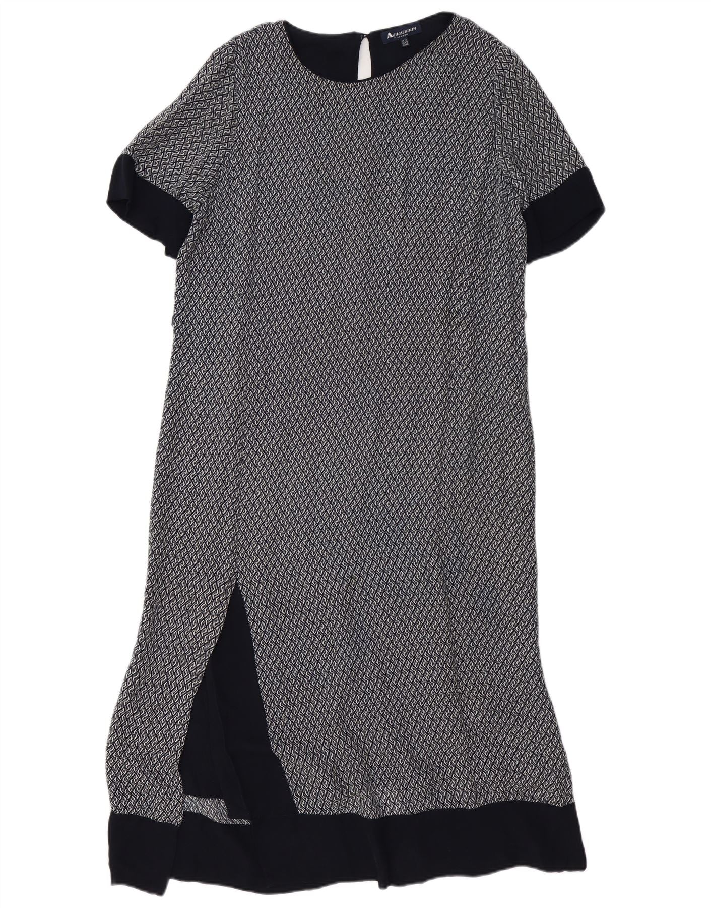 AQUASCUTUM Womens Maxi Dress UK 12 Medium Navy Blue Geometric Silk