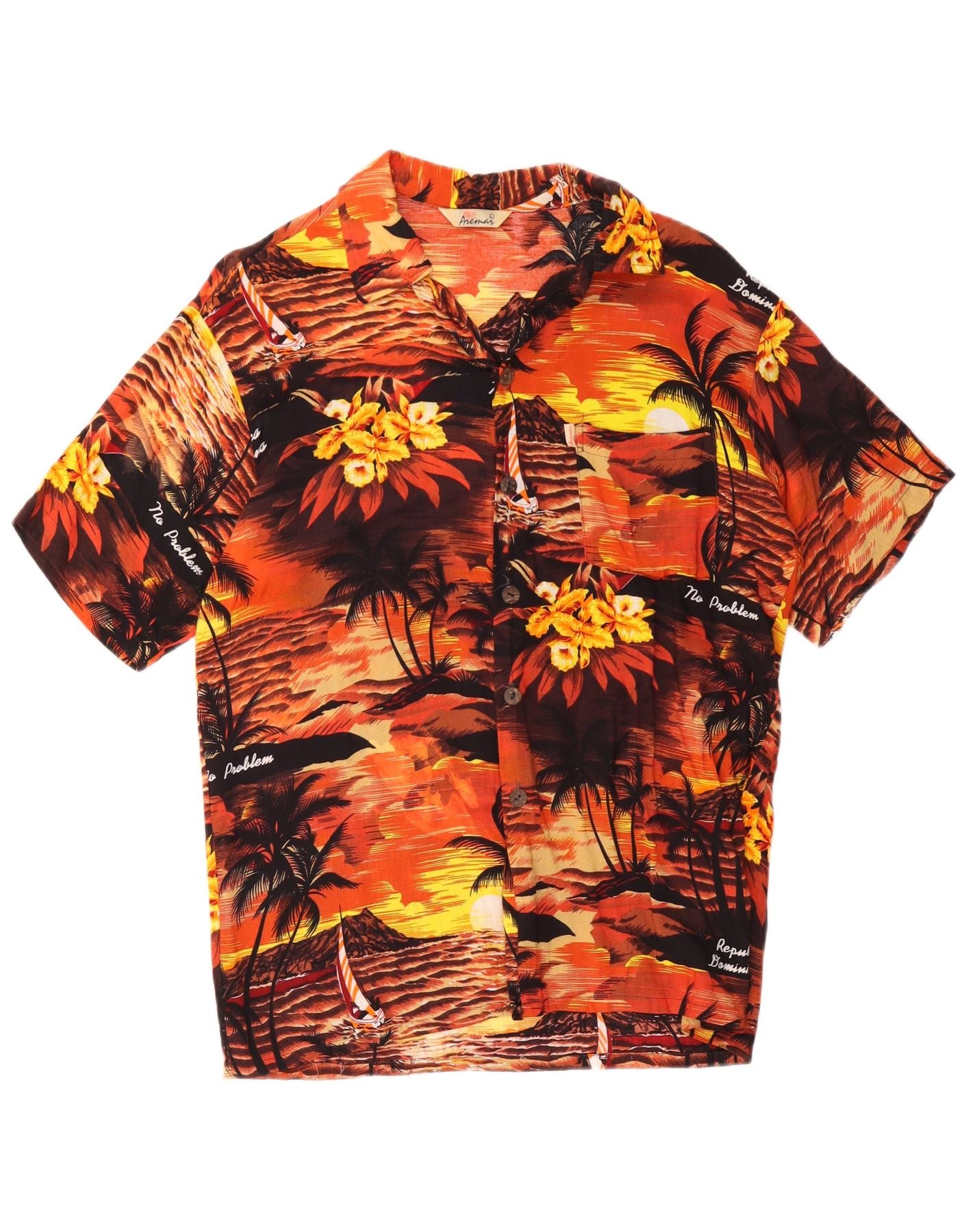 AREMAR Mens Short Sleeve Shirt Large Multicoloured Floral Hawaiian