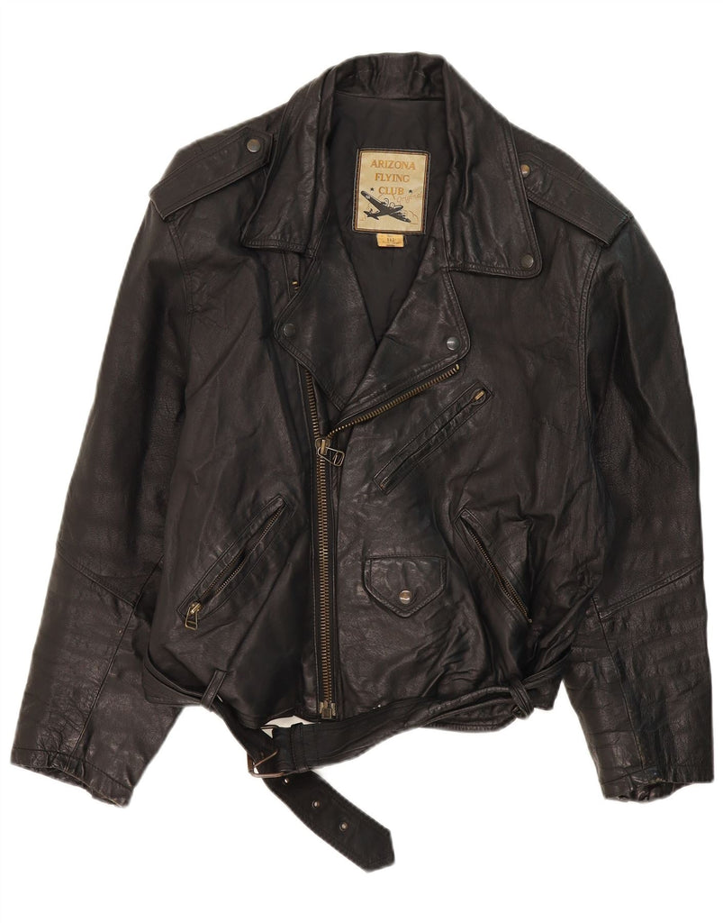 ARIZONA FLYING CLUB Womens Leather Biker Jacket UK 14 Large Black Leather