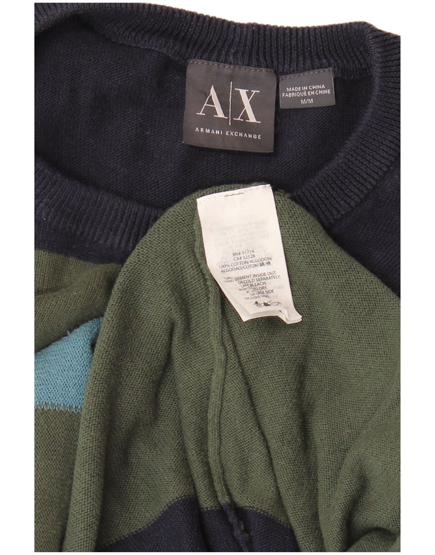 ARMANI EXCHANGE Mens Crew Neck Jumper Sweater Medium Navy Blue Colourblock