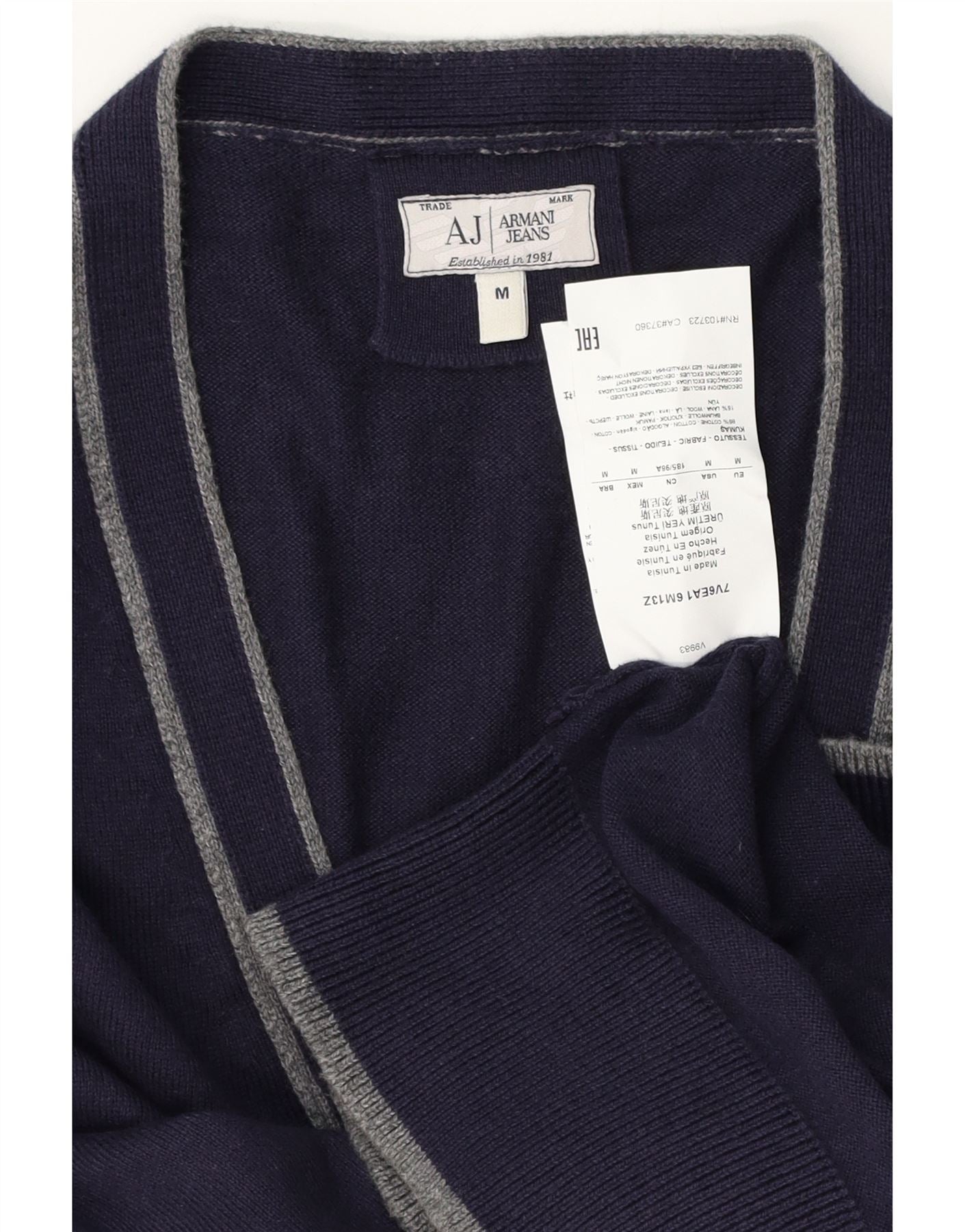 ARMANI JEANS Mens Cardigan Sweater Medium Navy Blue Colourblock Cotton