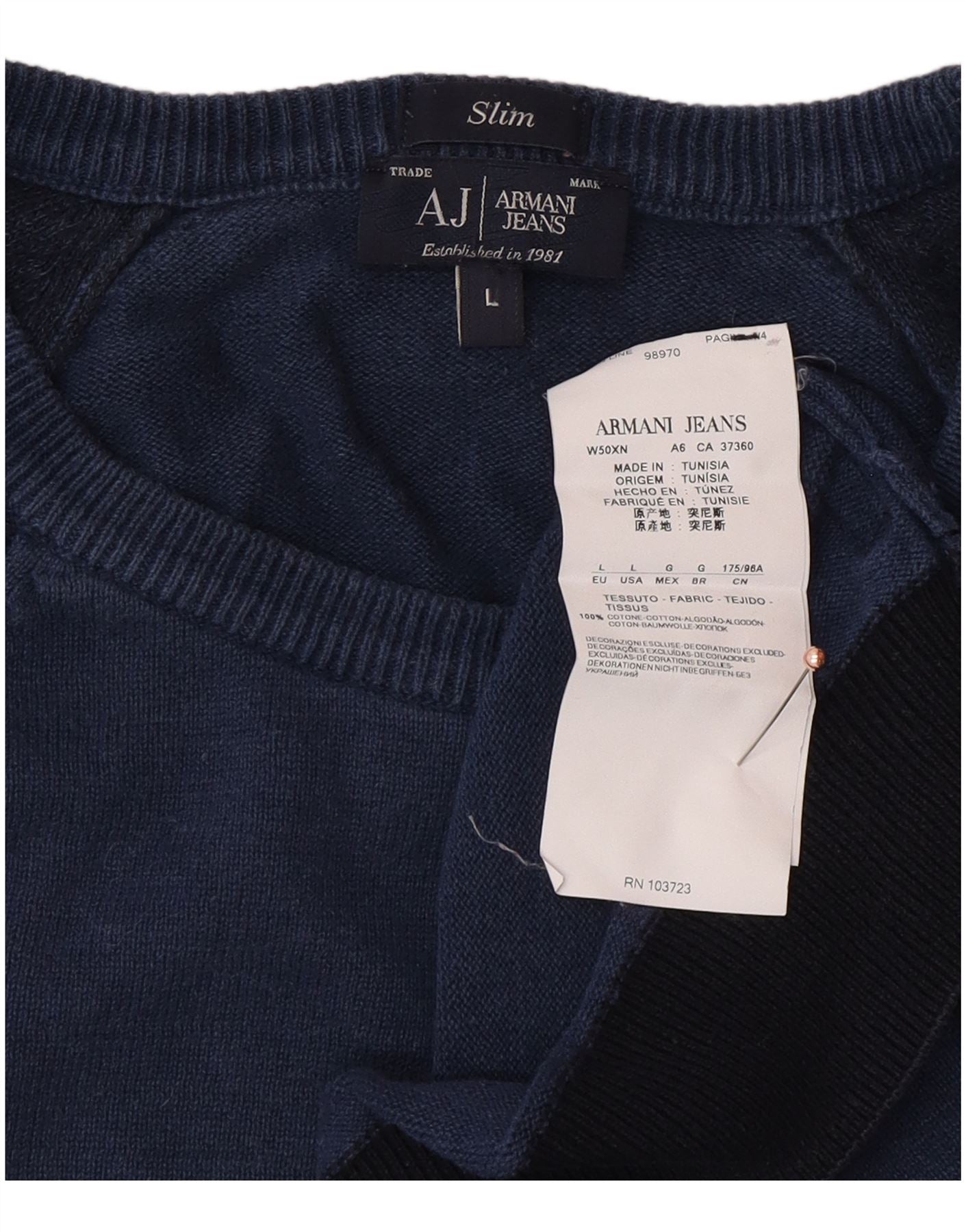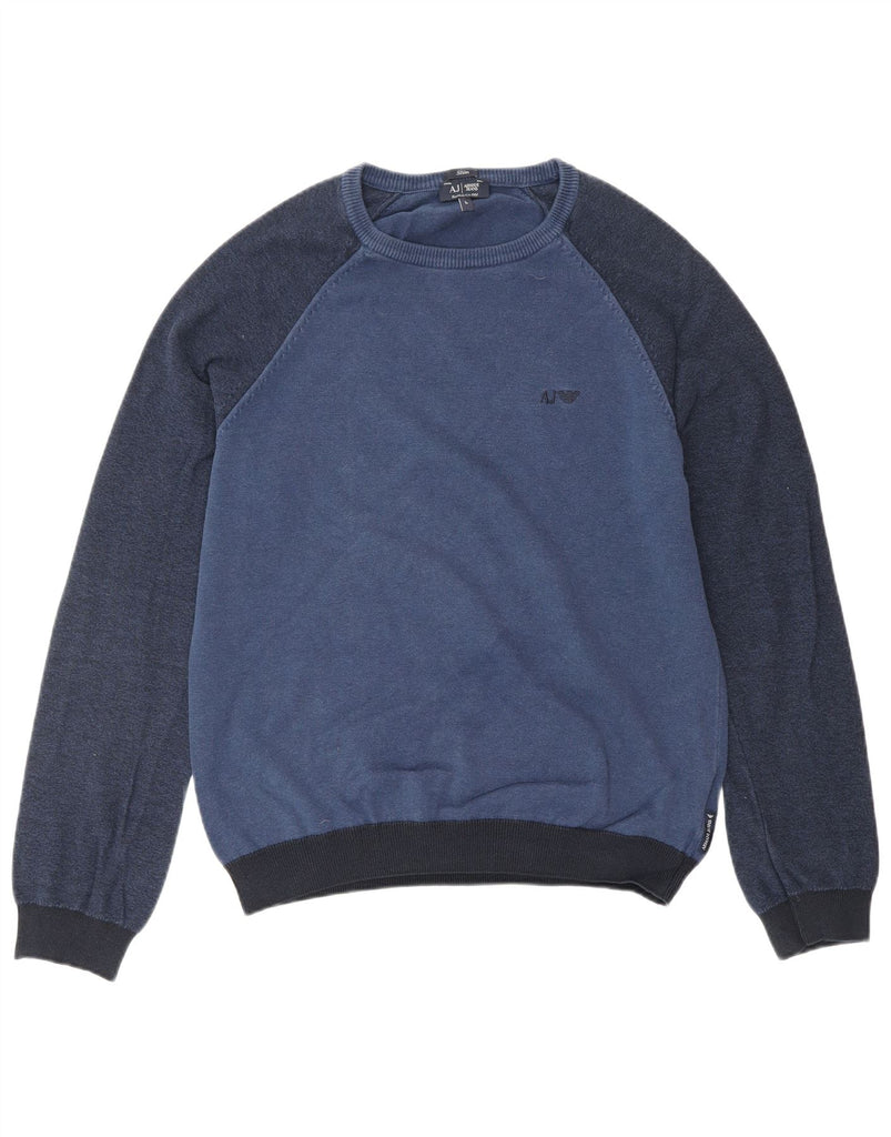 ARMANI JEANS Mens Crew Neck Jumper Sweater Large Navy Blue Colourblock
