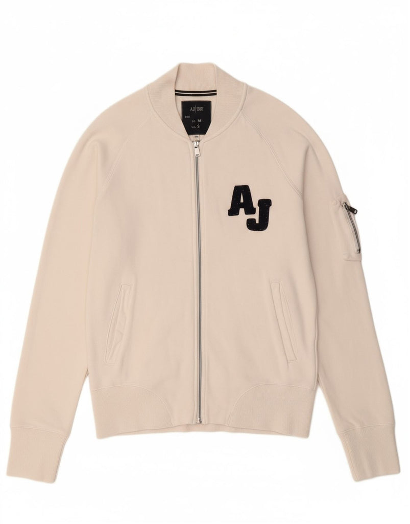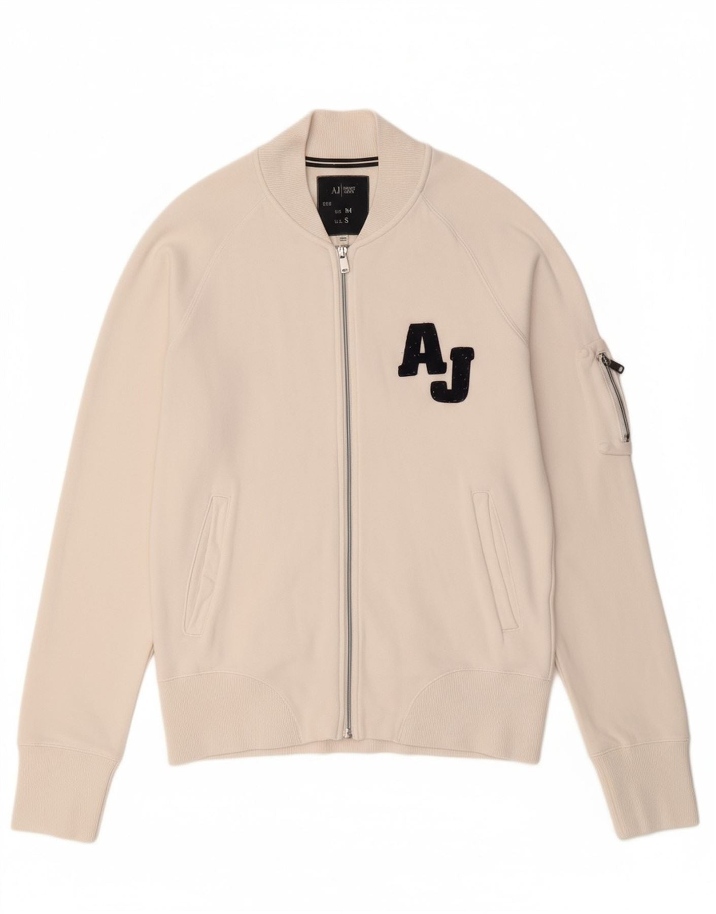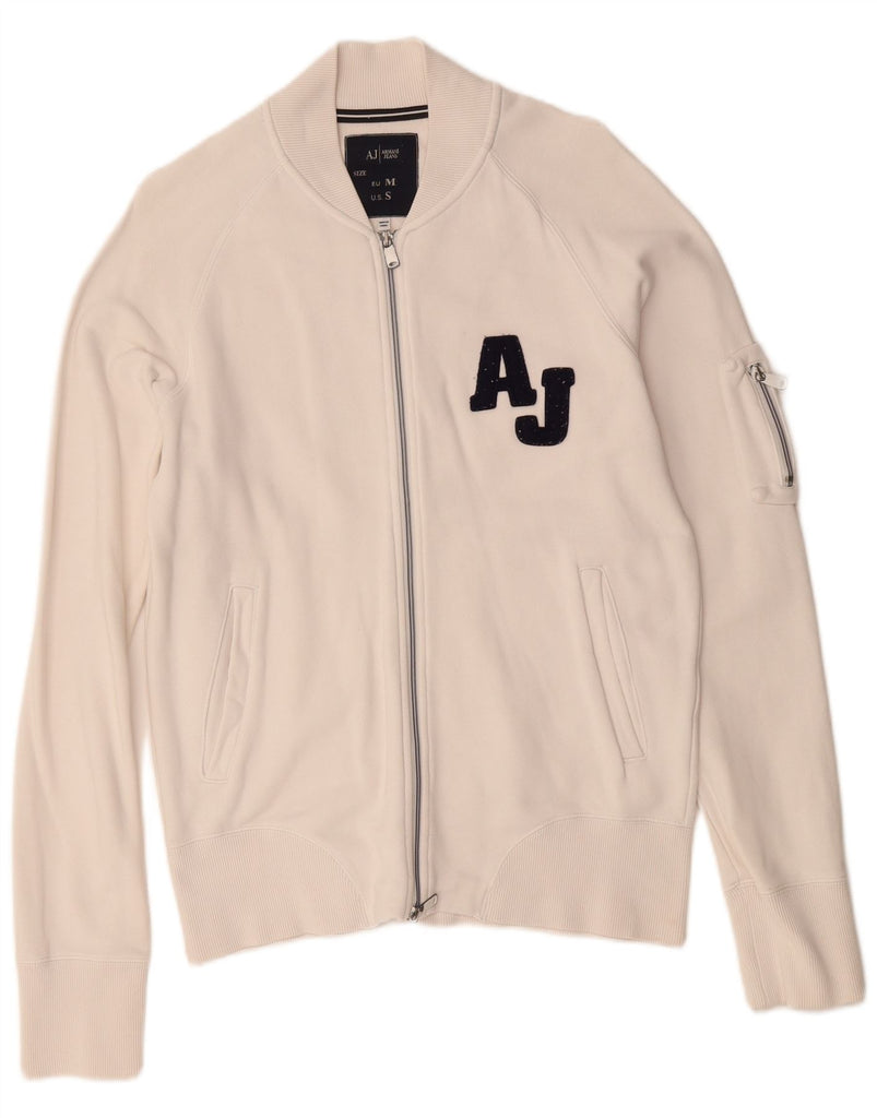 ARMANI JEANS Mens Graphic Tracksuit Top Jacket Small White Cotton
