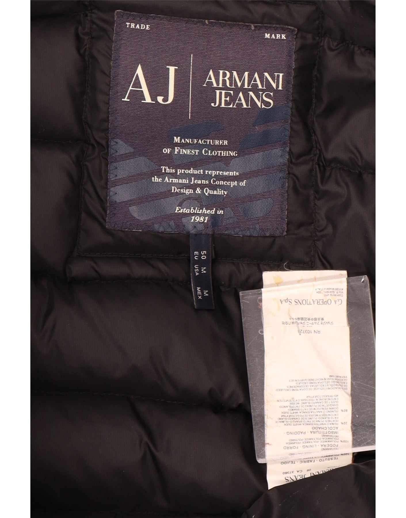 ARMANI JEANS Womens Hooded Padded Jacket UK 14 Medium Black Polyamide