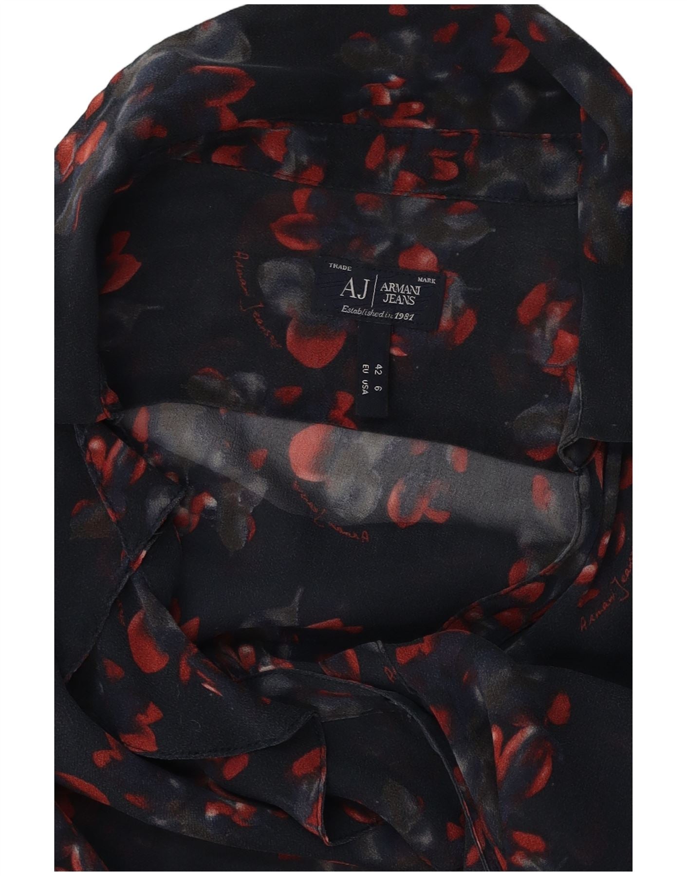 ARMANI JEANS Womens Ruffle Front Shirt Blouse EU 42 Large Navy Blue Floral