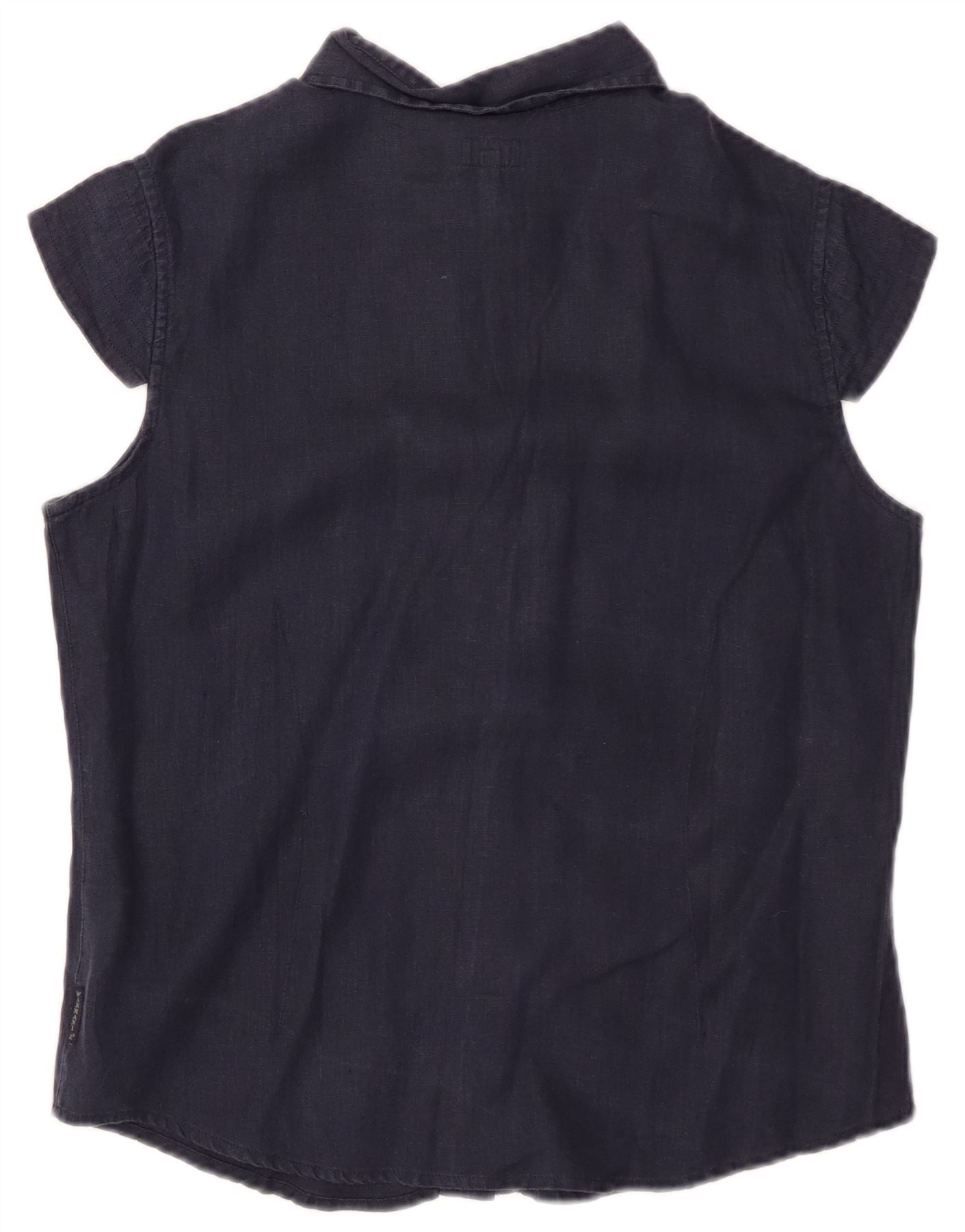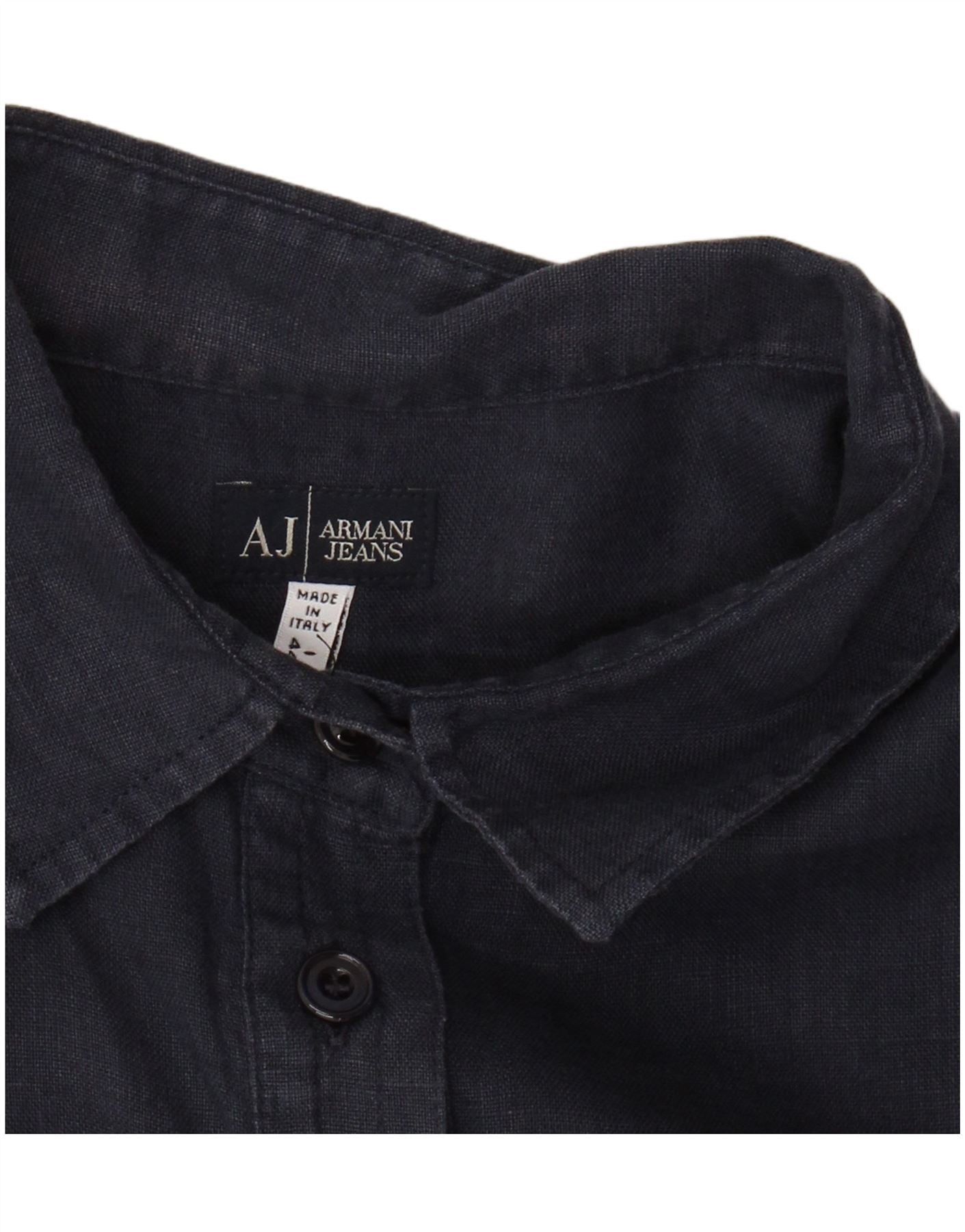 ARMANI JEANS Womens Short Sleeve Shirt UK 14 Medium Navy Blue Linen