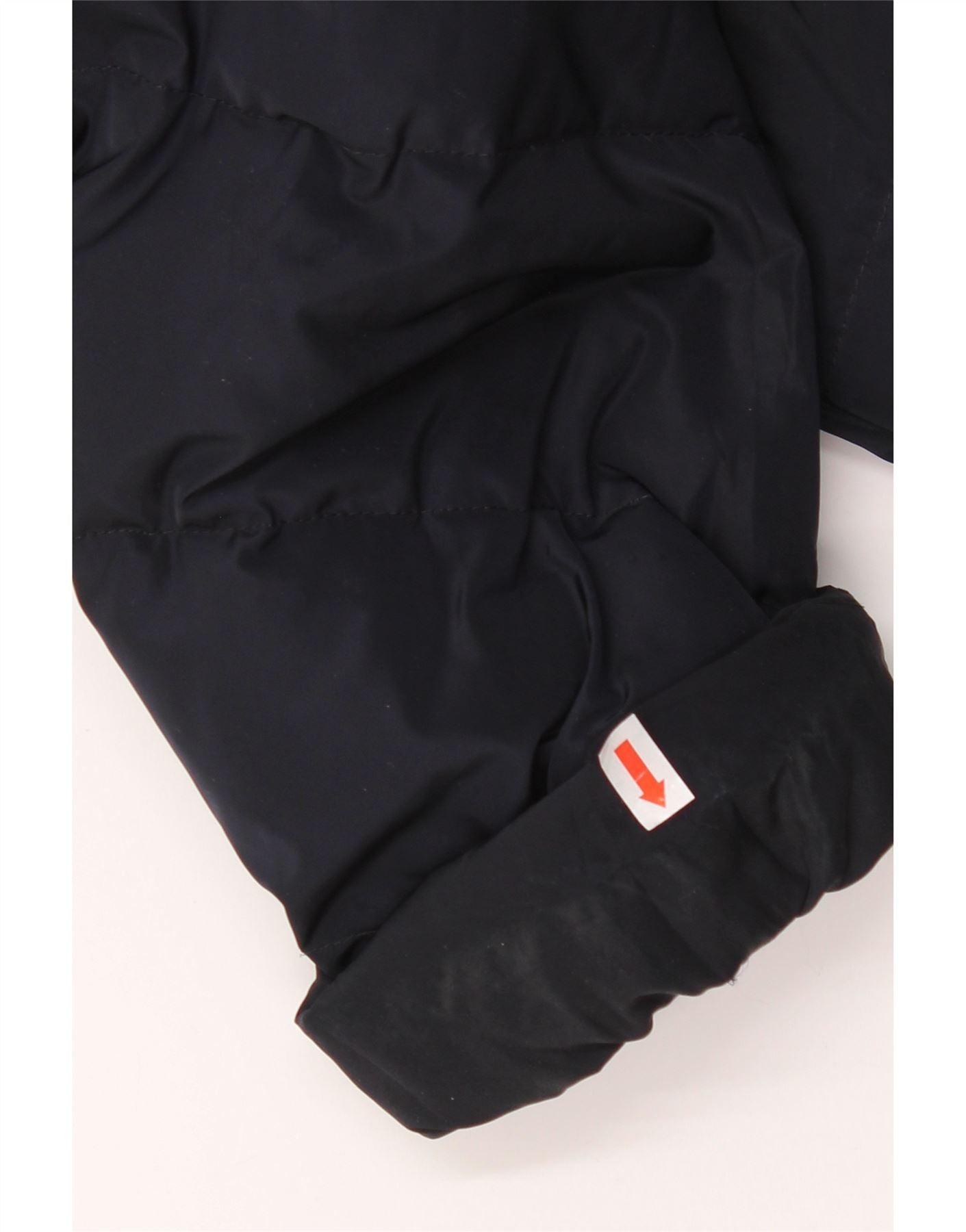 - AI Description: This Armani girls' padded jacket comes in a deep navy blue polyamide. It features a cosy hooded design and a high neck for warmth. The long sleeves and regular fit ensure comfortable wear. An asymmetrical zip closure adds a modern touch. Subtle padding provides insulation, while a discreet logo detail completes the designer look.