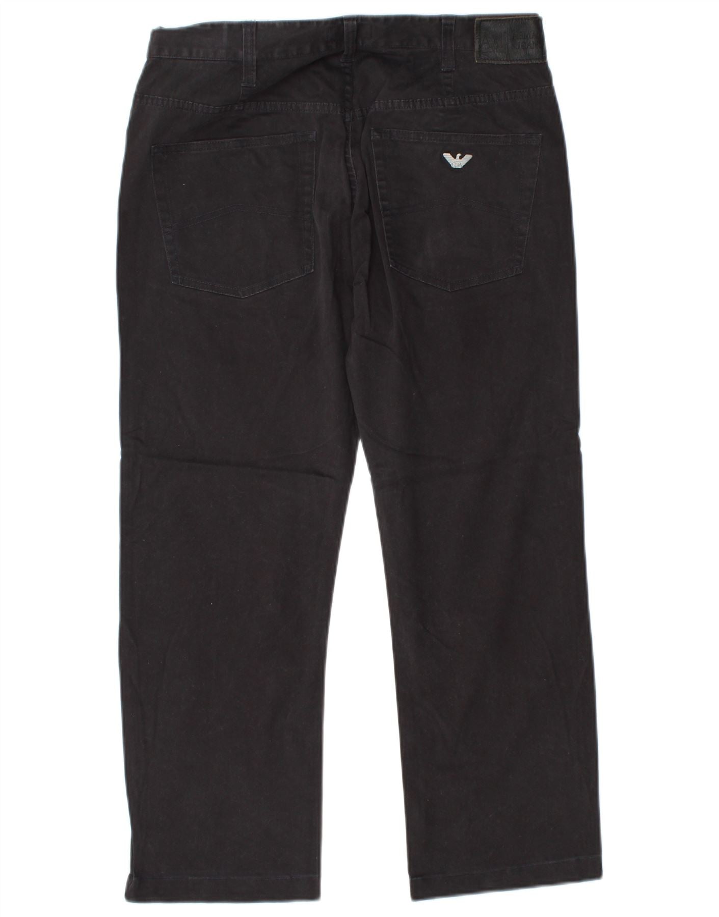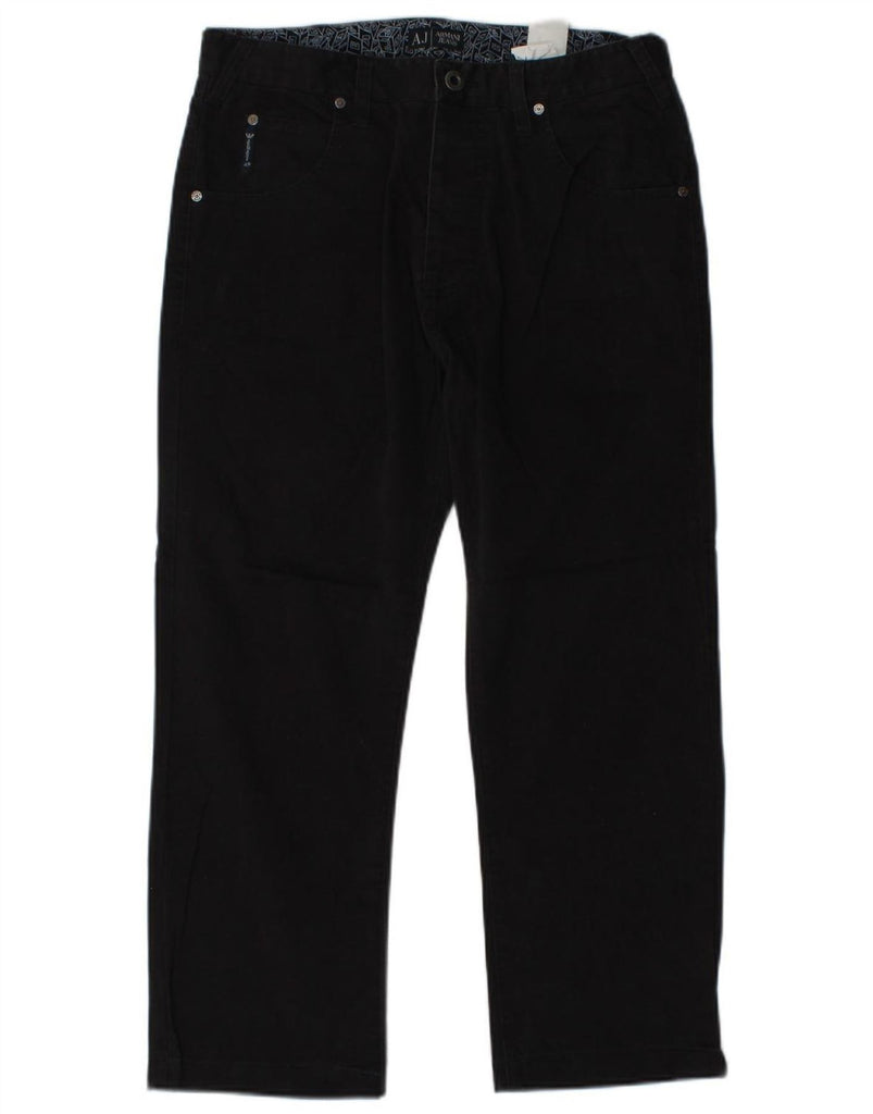 ARMANI Mens Comfort Fit Straight Cropped Trousers W32 L24 Black Cotton