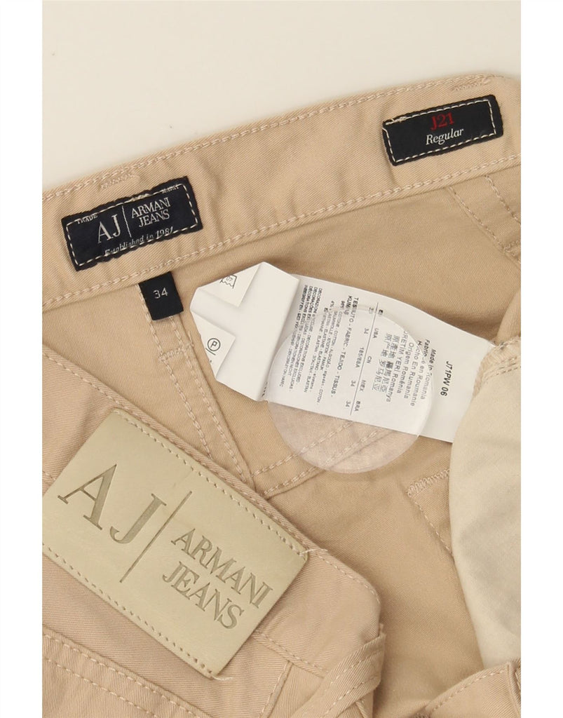 ARMANI Mens Straight Casual Trousers W34 L28 Beige Cotton