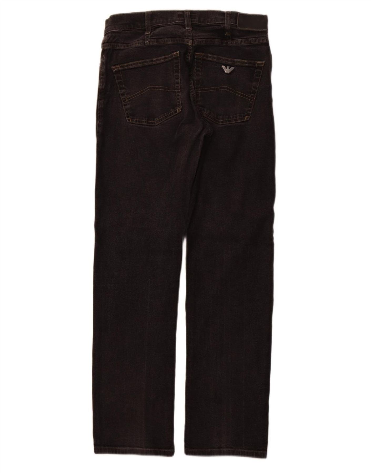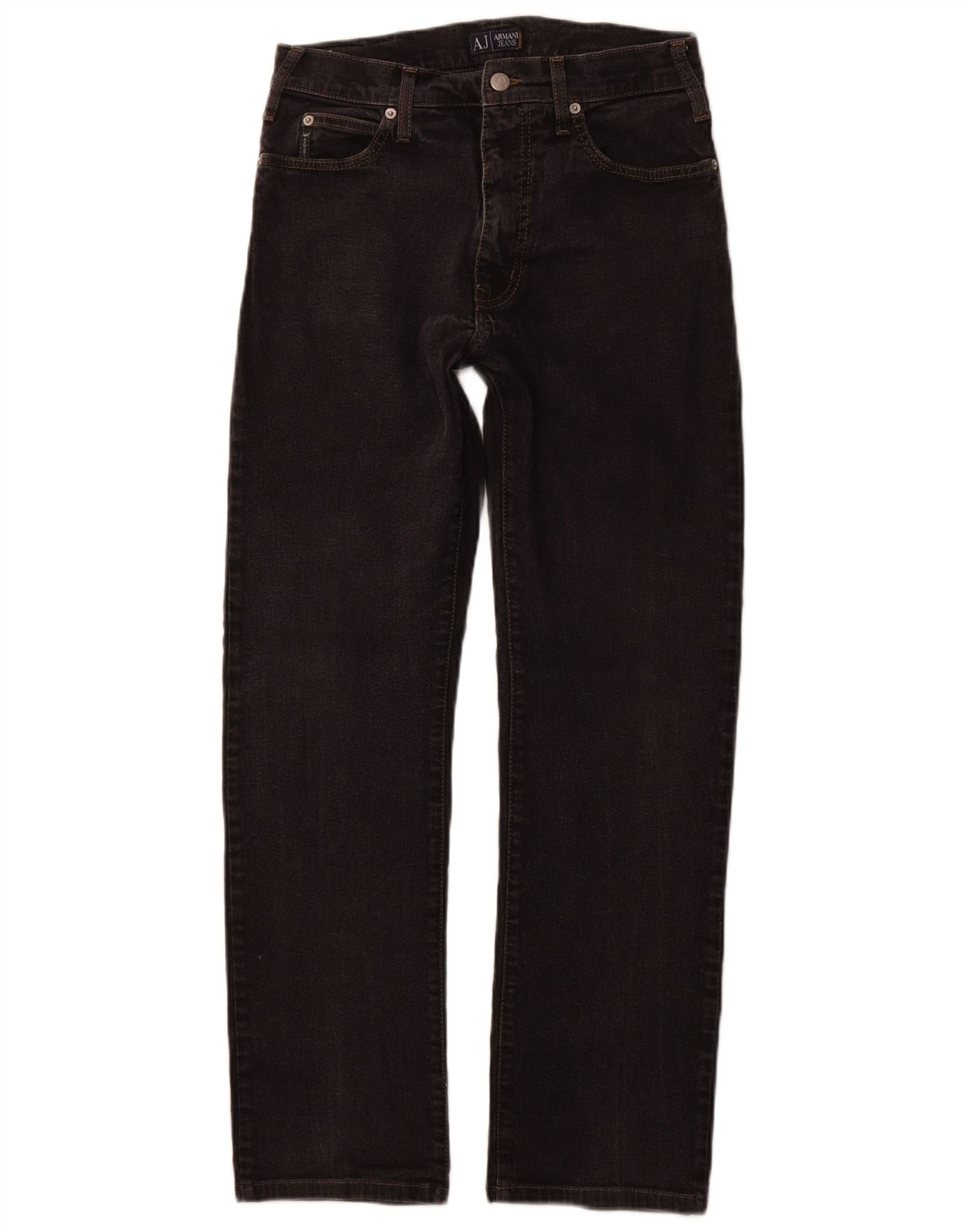 - AI Description: These Armani Jeans mens straight jeans are crafted from black denim with a comfortable stretch. They feature a classic straight leg for a timeless silhouette. The button closure and regular fit ensure everyday comfort. Practical pockets and a subtle brand logo complete the design, offering a versatile and classic style.