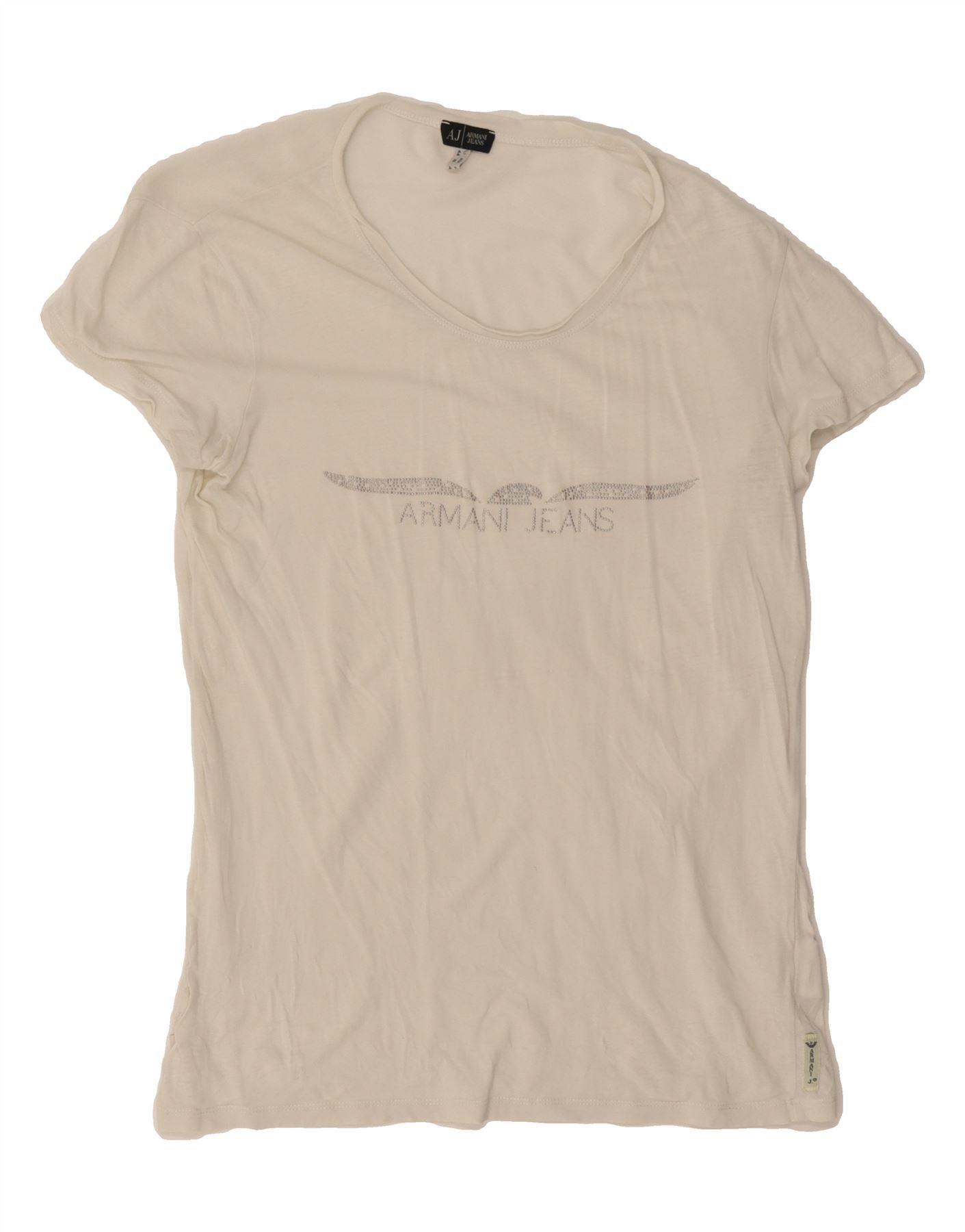 ARMANI Womens Graphic T-Shirt Top IT 44 Medium Off White Cotton