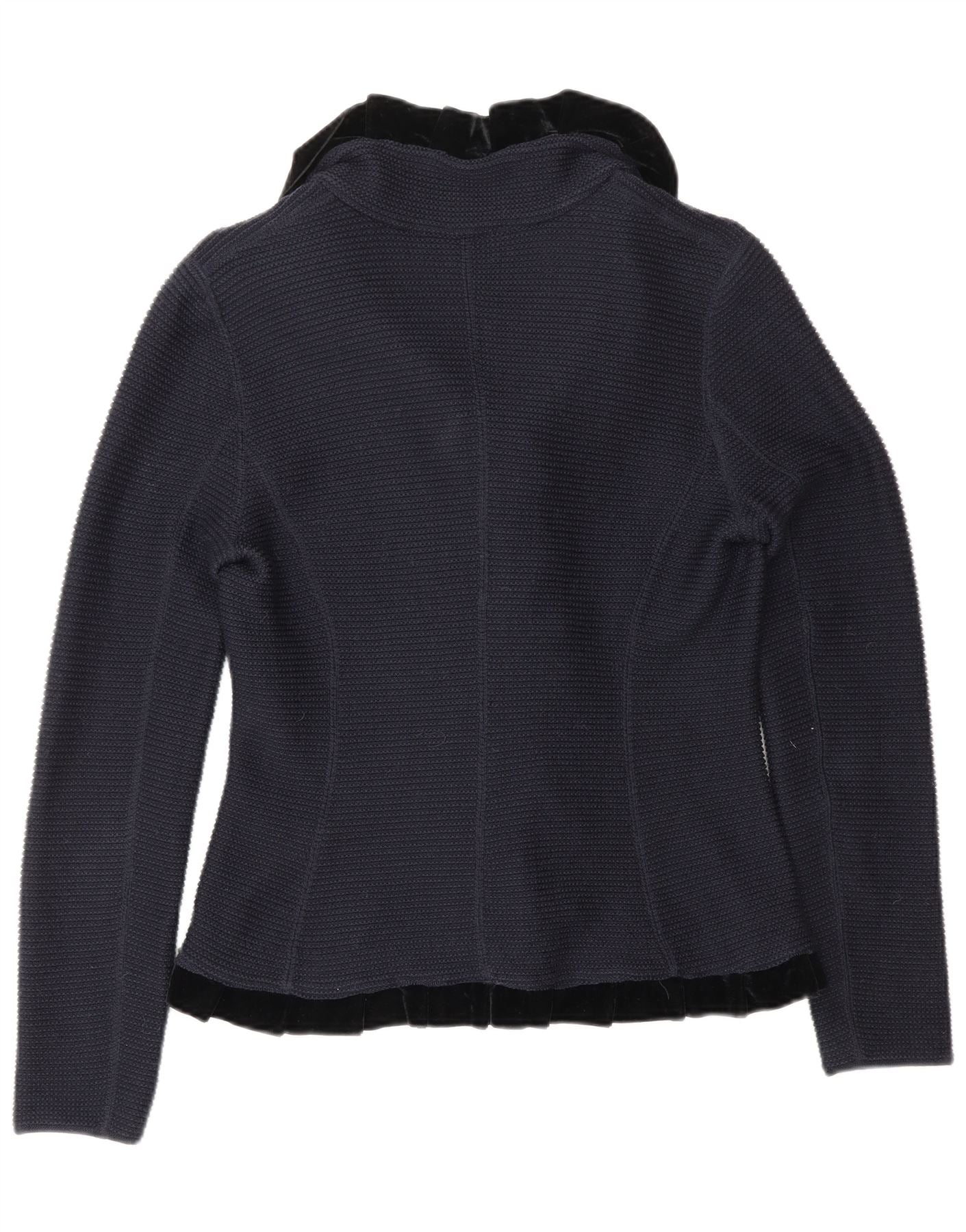 ARMANI Womens Ruffle Front Cardigan Sweater IT 42 Medium Navy Blue