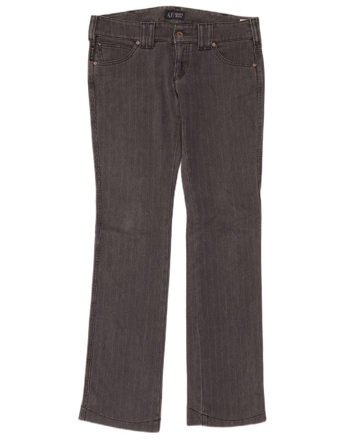 Home > Vintage Armani Clothing > Women's > ARMANI Womens Straight Low Waist Casual Trousers W34 L34 Grey Pinstripe