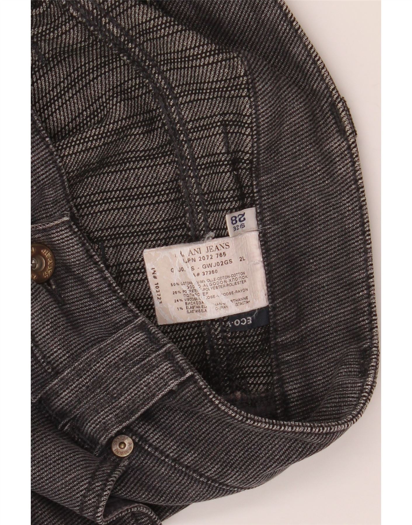- Condition: Good Used Condition: the item has been worn but is well maintained and may show minor signs of wear - Stretched waist.