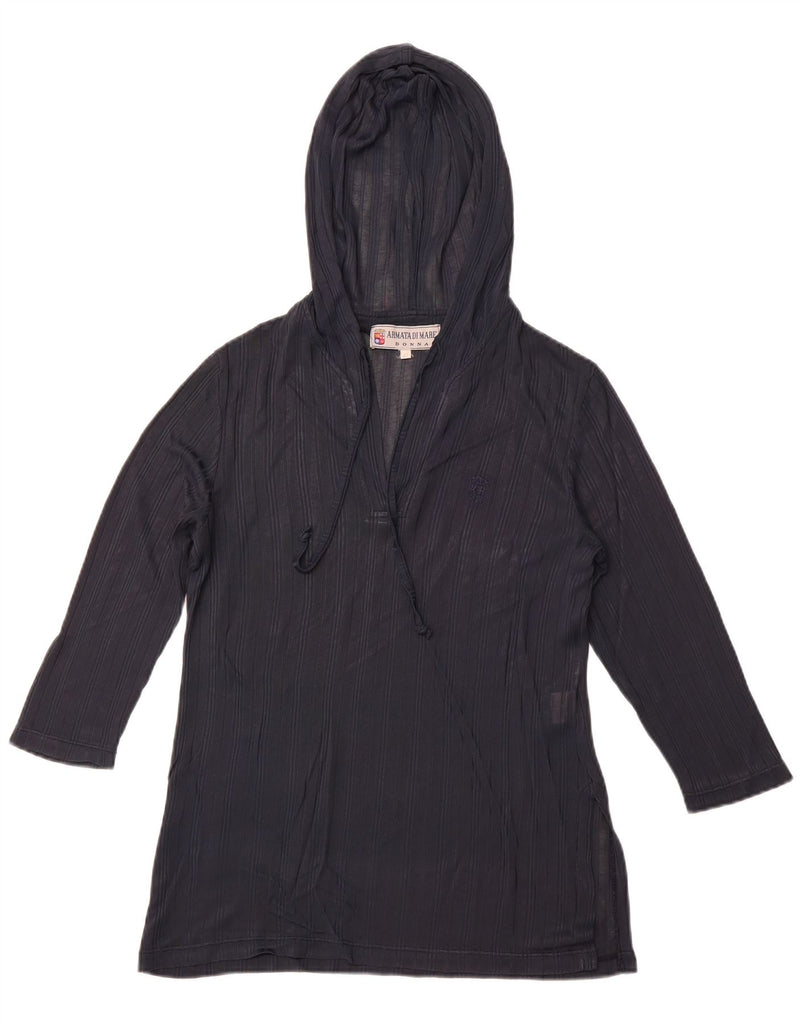 ARMATA DI MARE Womens Hooded Top 3/4 Sleeve IT 42 Medium Navy Blue Acetate