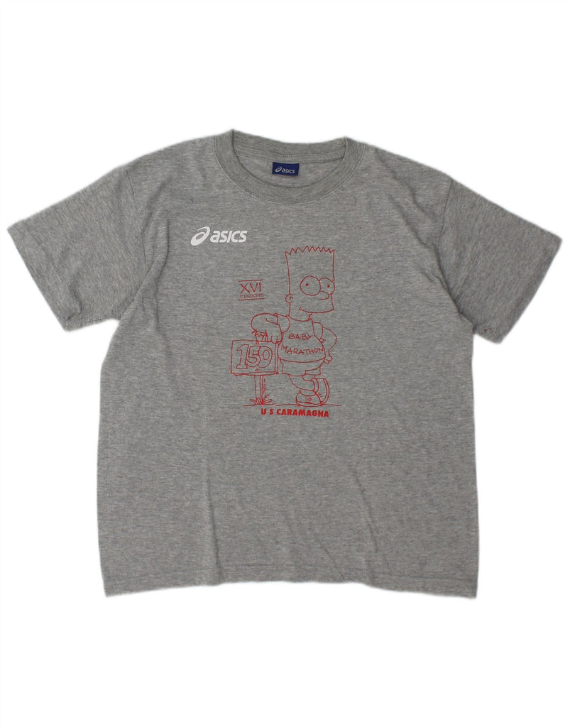 ASICS Boys Marathon Graphic T-Shirt Top 13-14 Years Grey Flecked Cotton