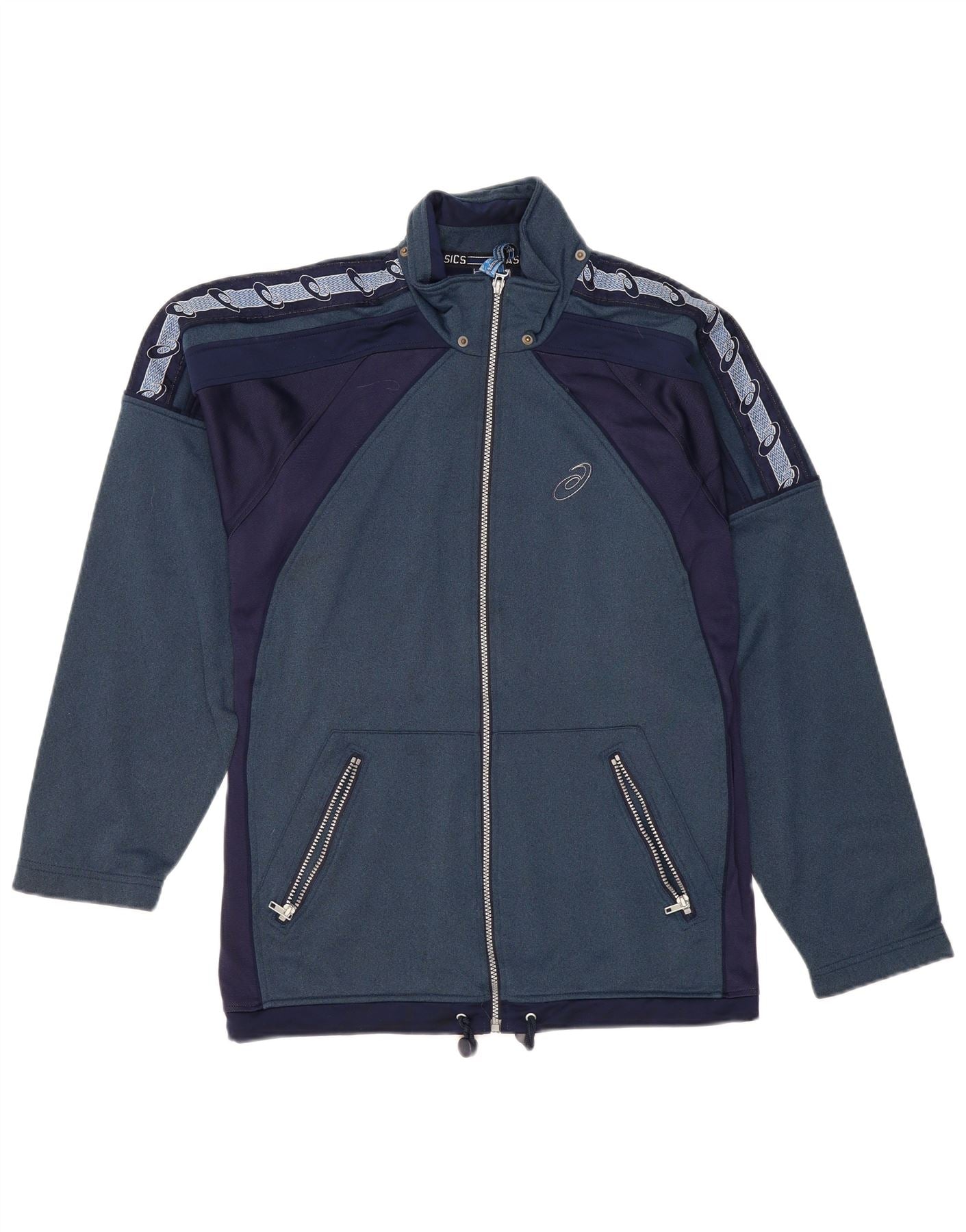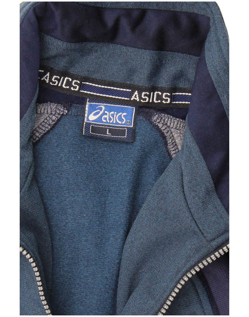 ASICS Mens Graphic Tracksuit Top Jacket Large Navy Blue Colourblock