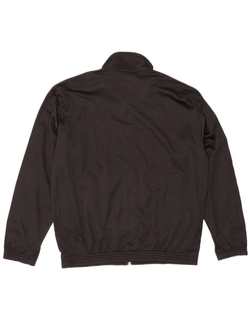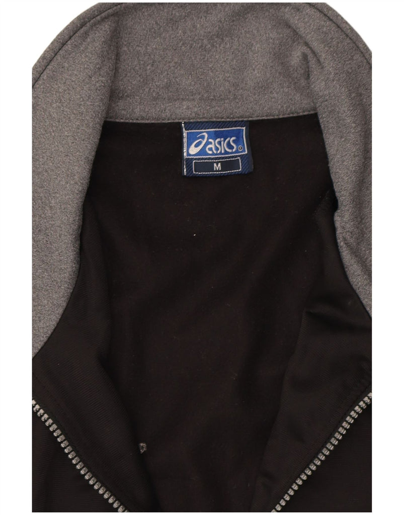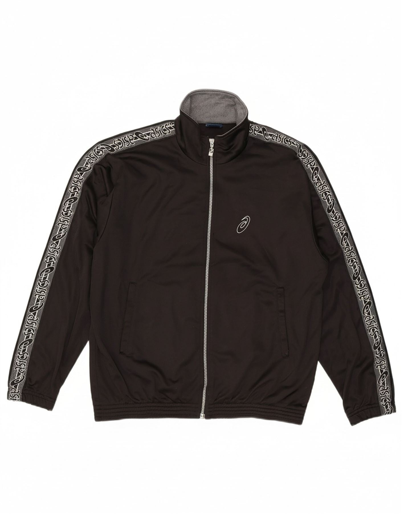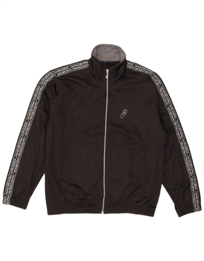 - AI Description: This Asics men's tracksuit top jacket is crafted from black knit fabric. It features a collared neckline and a full zip closure, ensuring versatile wear. The long sleeves and regular fit provide comfortable movement for sports or casual activities. Practical pockets offer convenience. An elasticated waist ensures a snug fit, while a subtle graphic and logo complete the athletic design.