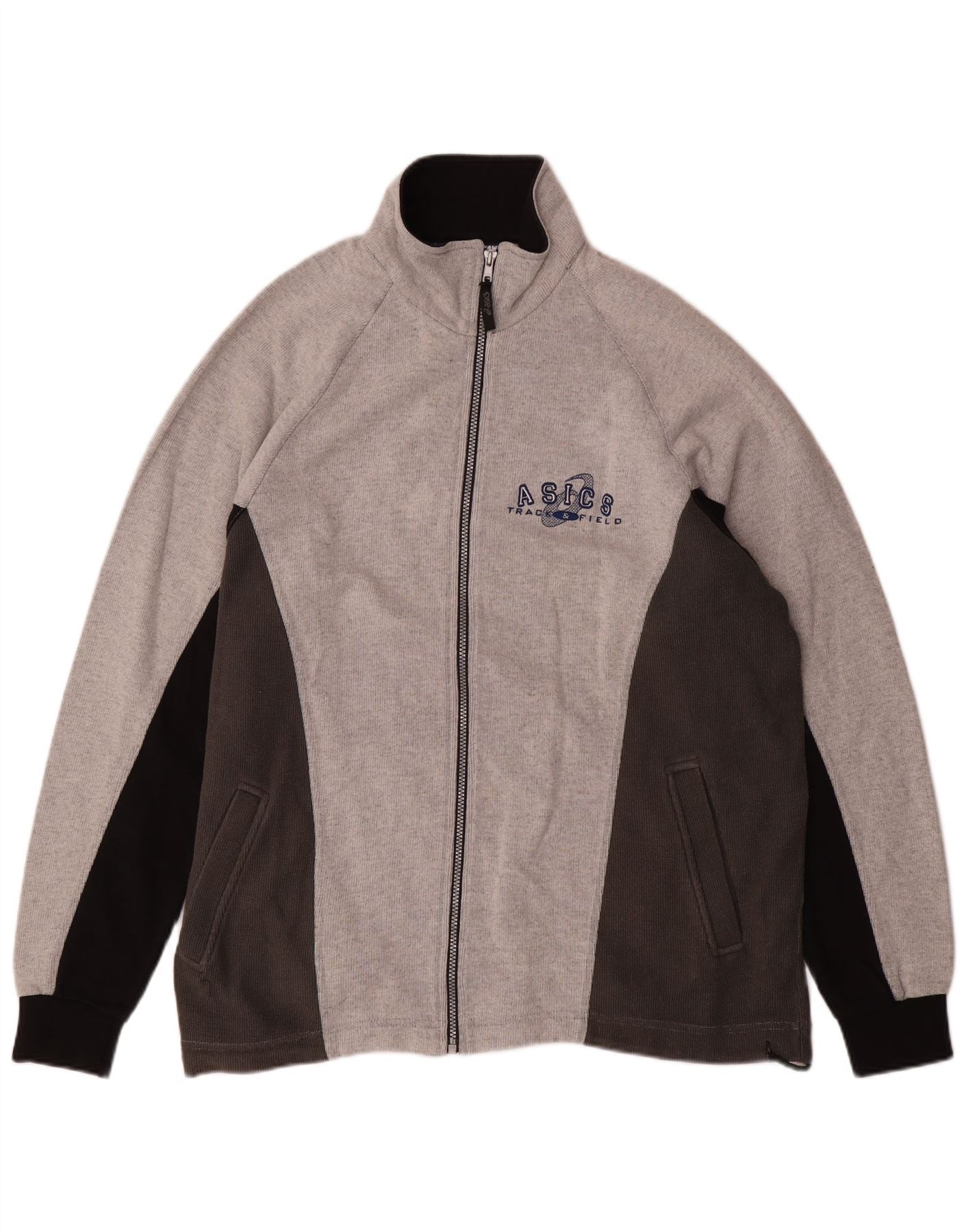 ASICS Mens Tracksuit Top Jacket Large Grey Colourblock Cotton